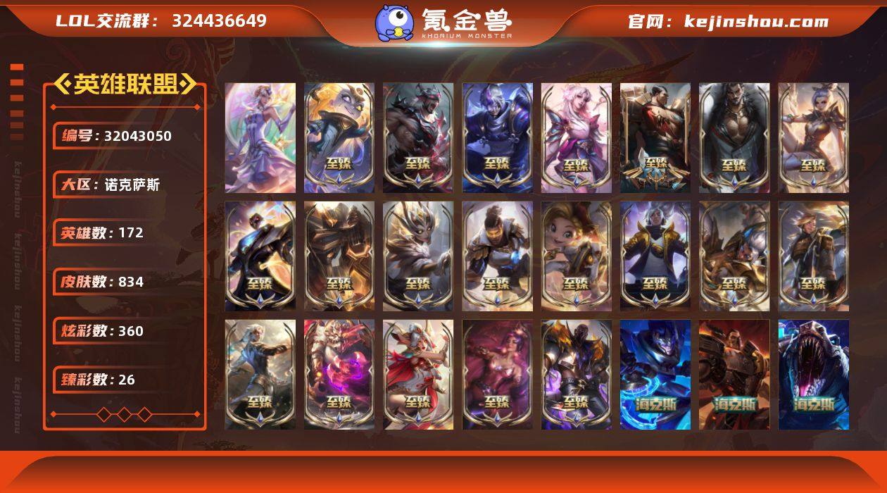 t37233【诺克萨斯】 834皮肤 360炫彩 26臻彩 39神话/148限定/81传说/172英雄 账号等级:564 单双排段位:铂金 【重要头像】爱意绵绵 觅心游侠卢锡安 银河魔装机神安妮 春晖神女拉克丝 击拳 送披萨的小姐姐希维尔 【重要皮肤】机神玄武盖伦至臻 永恒星灵佐伊至臻 T1塞拉斯至臻 暗裔英雄嘉文四世至臻 灵魂莲华劫至臻 灵魂莲华拉克丝至臻 凯旋将军德莱厄斯至臻 狼神英灵斯维因至臻 斗魂觉醒派克至臻 剪纸仙灵希维尔至臻 神凰行者烈羽焰凰霞至臻 魔女婕拉至臻 奥术师佐伊至臻 未来战士卢锡安至臻 真实伤害亚索至臻 灵能特工伊泽瑞尔至臻 神龙尊者炎龙瑟提至臻 黑夜使者凯隐至臻 神龙尊者均衡之龙沃利贝尔至臻 玉剑传说武剑仙至臻 玉剑传说武剑仙2022至臻 未来战士锤石至臻 未来战士锤石2022至臻 殿堂传奇薇恩 殿堂传奇乐芙兰 灰烬骑士莫德凯撒 灰烬骑士派克 海克斯科技雷克顿 海克斯科技嘉文四世 水晶泰坦诺提勒斯 水晶掠夺者卡兹克 永恒之森奥恩 暗星科加斯 恐惧新星德莱厄斯 零之枪骑赫卡里姆 胜利行刑官德莱文 胜利剑圣易 胜利女神娑娜 胜利之王泰达米尔 胜利巨口克格莫 勇敢的心德莱厄斯 电玩女神厄运小姐 电玩勇者锐雯 星之守护者伊泽瑞尔 玉剑传说无影 女帝厄运小姐 玉剑传说无劫 灵能特工易 黎明使者薇恩 点心宝贝阿木木 剪纸仙灵希维尔 剪纸仙灵婕拉 剪纸仙灵加里奥 龙腾虎跃瑟提 替父从军花木兰 神龙烈焰金克丝 碧玉之牙卡西奥佩娅 古琴余韵娑娜 春晖神女拉克丝 你看见过我的熊猫吗安妮 北辰之威内瑟斯 美猴王孙悟空 广寒仙子嫦娥 张辽文远 司马懿仲达 金猪烈焰瑟庄妮 烈焰美人薇恩 神龙之翼库奇 福牛守护者德莱厄斯 龙马烈焰波比 胜利女神瑟庄妮 胜利机器人布里茨 胜利枪神卢锡安 胜利之剑亚托克斯 碎心之拳蔚 觅心之翼...