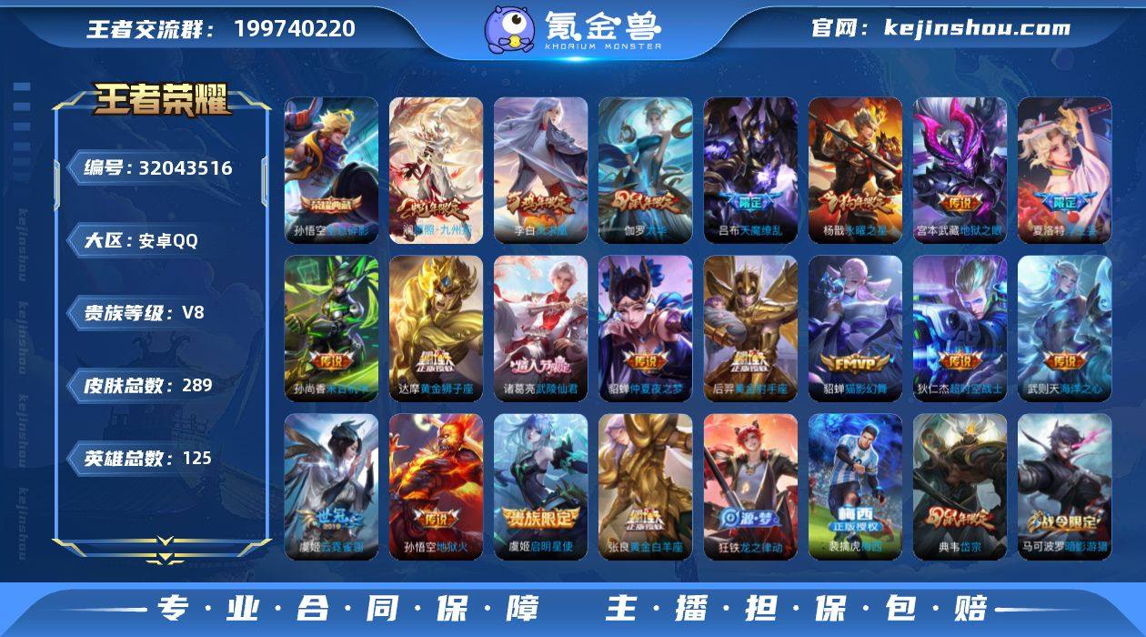 【绝版梅西九州拓凤求凰】:安卓Q-V8-至尊星耀II段位-125英雄-289皮肤-2典藏-0无双-0珍品传说-19传说-70史诗 【荣耀典藏】:武则天英雄,孙悟空全息碎影 【内测皮肤】:高渐离玩趣恶龙,干将莫邪胡桃夹子 【传说皮肤】:狄仁杰超时空战士,武则天海洋之心,吕布天魔缭乱,孙悟空地狱火,宫本武藏地狱之眼,孙尚香末日机甲,李白凤求凰,貂蝉仲夏夜之梦,诸葛亮武陵仙君,杨戬永曜之星,后羿黄金射手座,达摩黄金狮子座,虞姬云霓雀翎,张良黄金白羊座,貂蝉猫影幻舞,伽罗太华,虞姬启明星使,夏洛特浮生妄,澜愿照九州拓 【限定皮肤】:白起狰,姜子牙天穹之誓,狄仁杰阴阳师,虞姬凯尔特女王,赵云皇家上将,妲己热情桑巴,庄周蜃楼王,庄周云端筑梦师,高渐离死亡摇滚,高渐离玩趣恶龙,孙膑妖精王,扁鹊炼金王,芈月重明,吕布天魔缭乱,周瑜赤莲之焰,夏侯惇朔风刀,甄姬游园惊梦,曹操烛龙,曹操天狼征服者,典韦穷奇,典韦岱宗,马可波罗逐梦之星,马可波罗暗影游猎,狄仁杰魔术师,狄仁杰万华元夜,达摩沙漠行僧,项羽海滩派对,老夫子醍醐杖,关羽冰锋战神,貂蝉逐梦之音,程咬金演武夺筹,韩信逐梦之影,韩信飞衡,王昭君凤凰于飞,兰陵王驯魔猎人,兰陵王金庭之子,花木兰青春决赛季,孙悟空美猴王,后羿辉光之辰,李元芳银河之约,李元芳云中旅人,虞姬启明星使,钟馗驱傩正仪,杨戬永曜之星,哪吒逐梦之翼,干将莫邪胡桃夹子,雅典娜黎明之约,蔡文姬繁星吟游,太乙真人饕餮,太乙真人华丽摇滚,鬼谷子原初探秘者,诸葛亮武陵仙君,苏烈千军破阵,百里玄策原初追逐者,弈星混沌棋,公孙离蜜橘之夏,沈梦溪星空之诺,沈梦溪大漠名商,明世隐疑决卦,裴擒虎擒涛扼浪,狂铁御狮,伽罗太华,嫦娥暖冬兔眠,鲁班大师探海日志,桑启海盐诗旅,夏洛特浮生妄,张良古海寻踪,裴擒虎梅西,鬼谷子天穹祈灯 【年...