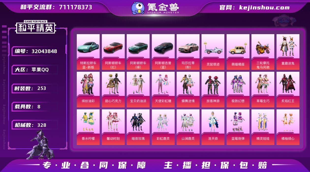 "h9873[少萝号]34粉 16特 8载具 1僚机 巧克力三姐妹 缤纷油彩 童趣迷兔 蝶舞迷情 放客神游 彩虹甜喵 第五大道 暖熊萌萌 馨动时刻 仲夏莫吉托 暗影哥特 兔兔白日梦 7暖熊萌萌 7甜心宝贝 7超新星 粉玛莎 特斯拉水滴蓝 萌喵橘座" 苹果 手Q-34粉装-16特效枪-8载具-7粉色飞行器-137008热力值-13王牌印记-253套装-328枪皮 【热门品类】:粉装-童趣迷兔,粉装-缤纷油彩,套装-浪漫天命,套装-龟仙人,套装-潮萌小黄鸭,套装-暗影哥特,套装-浪漫波比,套装-粉红小猪 【粉色套装】:粉装-甜心巧克力,粉装-宝贝奶油派,粉装-天使彩虹糖,粉装-蝶舞迷情,粉装-缤纷油彩,粉装-放客神游,粉装-极致幻想,粉装-草莓生巧,粉装-童趣迷兔,粉装-炙焰红王,粉装-香水柠檬,粉装-馨动时刻,粉装-暗夜玫瑰,粉装-彩虹鹿灵,粉装-山涧鹿灵,角色-洛天依,粉装-蓝莓炮弹,粉装-精灵娃娃,粉装-橘柚倾心,粉装-暖熊萌萌,粉装-傲雪凌霜,粉装-垂柳戏鸭,粉装-灵感创作师,粉装-彩虹甜喵,粉装-冰川幽秘,粉装-冰川红玫,粉装-第五大道,粉装-仲夏莫吉托,角色-白勺歌姬,角色-呆萌星弥,角色-小可学妹,粉装-萌物绒绒,粉装-莲影清波,粉装-憨憨奶龙 【粉色枪皮等级】:AKM-甜心宝贝(七级),AKM-梦之光华(一级),SCAR-L-童趣迷兔(七级),M416-五爪金龙(一级),M416-心之恋语(四级),M416-暖熊萌萌(七级),GROZA-香水柠檬(七级),AUG-星之彼岸(一级),AUG-超新星(七级),M762-甜心娃娃(七级),汤姆逊-怪笑疯兔(四级),P90-甜蜜草莓(七级),AWM-橘柚倾心(三级),SLR-暗夜玫瑰(一级),M249-蓝莓炮弹(四级),M249-彩虹甜喵(四级) 【粉色载具】:特斯拉Roadster(水滴蓝),阿斯顿马丁DBS(红),阿斯顿马丁DBS(绿),阿斯顿马丁DBX(蓝),玛莎拉蒂Ghibli(粉),灵鼠银迹,萌喵橘座,鬼马风驰,僚机-萌兔起飞 【粉色枪皮】:AKM-甜心...