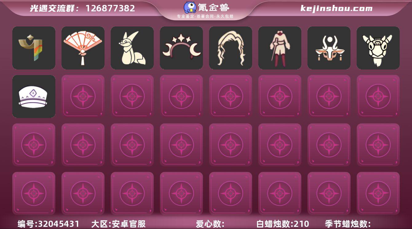 蜡烛数:210/爱心数:20/彩染季/辉光羚羊面具/星月头饰/献瑞折扇礼包/小狐狸/击剑裤/虚荣/平顶帽/羊头面具/星月头冠