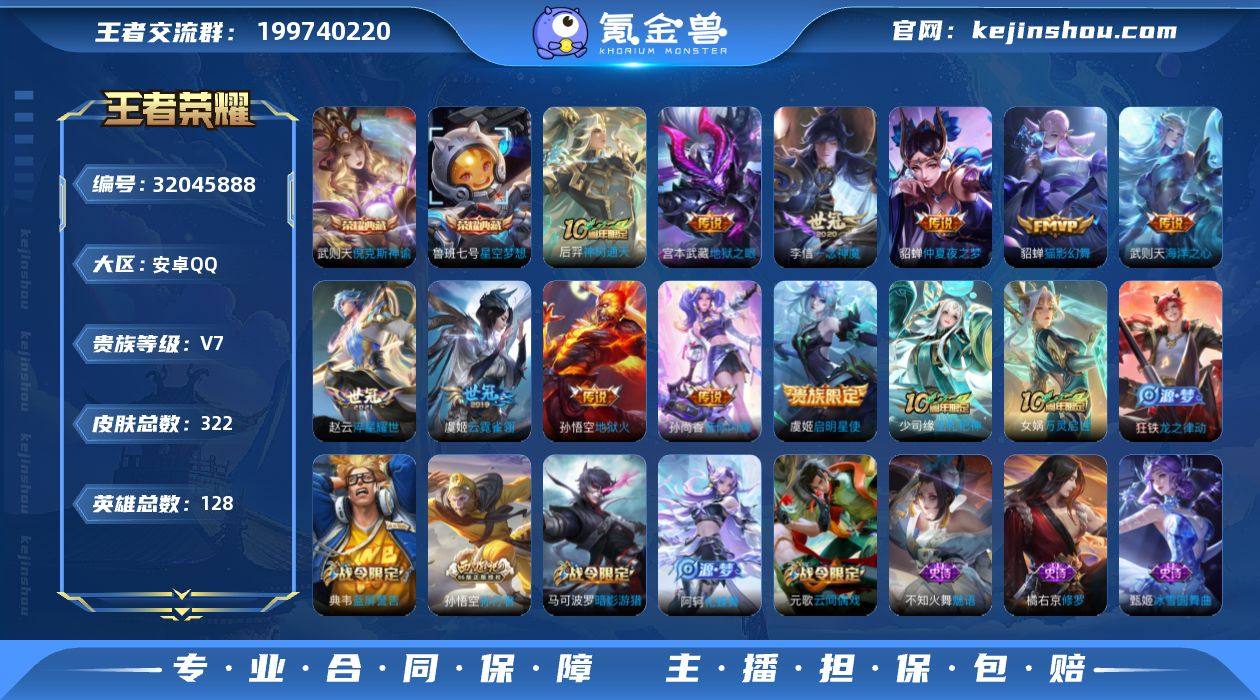 【322皮2典藏11传说 倪克斯神谕 星空梦想 音你闪耀 淬星耀世 一念神魔 海洋之心】安卓Q-V7-最强王者段位-128英雄-322皮肤-2典藏皮肤-1典藏英雄-11传说-80史诗 【英雄全皮】:刘邦全皮,孙权全皮 【荣耀典藏】:武则天英雄,武则天倪克斯神谕,鲁班七号星空梦想 【传说皮肤】:后羿神树通天,孙尚香音你闪耀,赵云淬星耀世,虞姬启明星使,李信一念神魔,貂蝉猫影幻舞,虞姬云霓雀翎,貂蝉仲夏夜之梦,宫本武藏地狱之眼,孙悟空地狱火,武则天海洋之心 【限定皮肤】:狄仁杰阴阳师,赵云皇家上将,墨子神迹守卫,墨子降魔,嬴政白昼王子,孙尚香蔷薇恋人,鲁班七号狮舞东方,庄周高山流水,高渐离玩趣恶龙,阿轲迷踪丽影,白起夜都怪侠,芈月重明,芈月幻夜卜梦,吕布猎兽之王,周瑜赤莲之焰,元歌云间偶戏,元歌无心,夏侯惇朔风刀,甄姬幽恒,甄姬游园惊梦,曹操烛龙,典韦穷奇,典韦蓝屏警告,马可波罗暗影游猎,狄仁杰魔术师,狄仁杰万华元夜,达摩星际陆战队,达摩沙漠行僧,项羽海滩派对,老夫子醍醐杖,老夫子航海奇遇记,程咬金演武夺筹,刘邦夺宝奇兵,兰陵王驯魔猎人,兰陵王金庭之子,亚瑟潮玩骑士王,孙悟空孙行者,牛魔御旌,后羿圣弓游侠,李元芳银河之约,李元芳云中旅人,虞姬启明星使,钟馗神迹守卫,钟馗驱傩正仪,杨玉环遇见飞天,女娲朔望之晖,干将莫邪真爱魔法,雅典娜单词大作战,蔡文姬繁星吟游,太乙真人饕餮,鬼谷子原初探秘者,鬼谷子五谷丰年,黄忠火炮绅士,苏烈千军破阵,弈星混沌棋,沈梦溪星空之诺,沈梦溪大漠名商,明世隐疑决卦,明世隐吟游魔法,裴擒虎李小龙,裴擒虎擒涛扼浪,狂铁御狮,米莱狄御霄,米莱狄胡桃异想国,云中君纤云弄巧,盾山御銮,猪八戒西部大镖客,上官婉儿梁祝,嫦娥拒霜思,蒙犽狂想玩偶喵,鲁班大师探海日志,桑启海盐诗旅,艾琳女武神,阿古朵江河有灵...