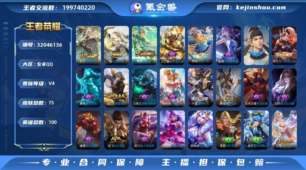 韩信小国标1.3W-无二次-安卓Q-V4-至尊星耀III段位-100英雄-75皮肤-3传说-17史诗HZ263407 【传说皮肤】:后羿神树通天,桑启鸣野蒿,镜炽阳神光 【限定皮肤】:姜子牙天穹之誓,李白谪仙醉月,狄仁杰阴阳师,达摩沙漠行僧,项羽海滩派对,沈梦溪大漠名商,桑启海盐诗旅,张良古海寻踪,蒙恬荣光圣徽,鬼谷子天穹祈灯,沈梦溪龙舞盛年,刘邦剑破天穹 【赛季限定】:达摩沙漠行僧,沈梦溪大漠名商,桑启海盐诗旅,张良古海寻踪,鬼谷子天穹祈灯,刘邦剑破天穹,姜子牙天穹之誓,东皇太一噬灭天穹,亚瑟荣光之誓,蒙恬荣光圣徽,牛魔星界战将 【战令限定】:周瑜线条小狗 【史诗皮肤】:太乙真人瓦猫非猫,周瑜线条小狗,牛魔星界战将,李白谪仙醉月,蒙恬荣光圣徽,狄仁杰鹰眼统帅,雅典娜冰冠公主,兰陵王暗隐猎兽者,刘邦德古拉伯爵,花木兰水晶猎龙者,张飞乱世虎臣,曹操幽灵船长,妲己魅力维加斯,孙尚香水果甜心,宫本武藏鬼剑武藏,廉颇地狱岩魂,王昭君偶像歌手,甄姬冰雪圆舞曲 【其他皮肤】:虞姬溯影追猎,蚩奼极光幻客,艾琳鹤鸣心笺,亚瑟荣光之誓,鬼谷子克喵,东皇太一噬灭天穹,姜子牙天穹之誓,刘邦剑破天穹,沈梦溪龙舞盛年,海诺时空谍影,鬼谷子天穹祈灯,张良古海寻踪,猪八戒潮玩探月行,桑启海盐诗旅,沈梦溪大漠名商,达摩沙漠行僧,鲁班大师乓乓大师,小乔丁香结,李白敏锐之力,诸葛亮掌控之力,关羽龙腾万里,刘备汉昭烈帝,狄仁杰阴阳师,宫本武藏万象初新,甄姬花好人间,张飞五福同心,花木兰兔女郎,达摩拳王,亚瑟死亡骑士,典韦黄金武士,宫本武藏未来纪元,扁鹊救世之瞳,韩信街头霸王,韩信教廷特使,项羽海滩派对,桑启画中游,云缨赤焰之缨,司空震启蛰,澜孤猎,蒙恬秩序猎龙将,镜冰刃幻境,马超幸存者,猪八戒年年有余,嫦娥露花倒影,裴擒虎街头旋风,明世隐占星师,百里玄...