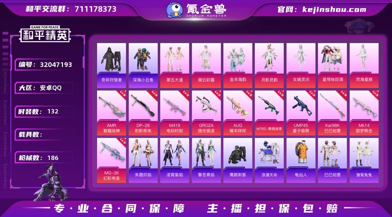 【FK6482】117套装/枪械4/装备127/战备95/王牌印记10/热力值41436/六级AKM-梦之光华/七级M416-五爪金龙/五级Kar98K-巳巳如意/五级Mk14-福马献瑞/梦幻火箭(新101)/奇异狩猎者/粉红小猪/红红火火/暗夜玫瑰/瑰丽时代/千金淑猫/AKM梦之光华/M416五爪金龙/Kar98K-巳巳如意/Mk14-福马献瑞/梦幻火箭降落伞/星之彼岸降落伞/暗夜玫瑰降落伞/垂柳戏鸭降落伞/圣堂之誓降落伞/千金淑猫降落伞/巳巳如意/套装-雪国风尚/套装-马上有钱/糖糖葫芦/青团波波/棉花软糖/都市丽猫/霓虹热舞/AKM-星之彼岸/AKM-破晓战魂/AKM-虎虎生威/AKM-龙的传人/M16A4-幻世战舞者/SCAR-L-炫彩节奏/SCAR-L-玉兔迎春/SCAR-L-红色方程式/SCAR-L-黄金龙骨/M416-夜灯/M416-糯团青竹/M416-蓝色火焰/GROZA-懵萌河马/AUG-耀粉歌者/QBZ-未来歌姬/QBZ-洛神天依/M762-天降萌叽/M762-彩虹符号/M762-瑞龙福将/G36C-懵萌河马/G36C-暗夜玫瑰/AC-VAL-天降萌叽/蜜獾-垂柳戏鸭/蜜獾-天降萌叽/蜜獾-娇憨猪猪/UZI-天降萌叽/UZI-娇憨猪猪/UZI-影袭/UZI-炫彩节奏/UMP45-炫光之旅/UMP45-生命誓言/UMP45-蓝色火焰/Vector-彩虹符号/汤姆逊-天降萌叽/汤姆逊-炫彩节奏/汤姆逊-耀粉歌者/野牛-夜灯/野牛-天星战神/AKS-74U-鬼刀/P90-飞驰魅影/P90-巳巳如意/Kar98K-2B战斗服款/Kar98K-炫彩节奏/M24-影袭/SKS-炫彩节奏/VSS-彩虹符号/Mini14-梦幻火箭/Mini14-涂山之恋/Mk14-治愈之星/Win94-瑞龙福将/SLR-娇憨猪猪/莫辛纳甘-懵萌河马/M417-惊鸿侠骨/M200-惊鸿侠骨/S686-生命誓言/S686-红色方程式/S686-千金淑猫/S12K-玩趣呆呆/S12K-瑞龙福将/S12K-垂柳戏鸭/S12K-娇憨猪猪/S12K-幻世战舞者/M249-彩虹符号/M249-破晓战魂/M249-糯团青竹/DP-28-彩虹符号/DP-28-齐天大圣/MG3-幻世战舞者/MG3-惊鸿侠骨/MG3-瑞龙福将/MG3-第五大道/PKM-懵萌河马/蝎式手枪-闲梦青缨/蝎式手枪-千金