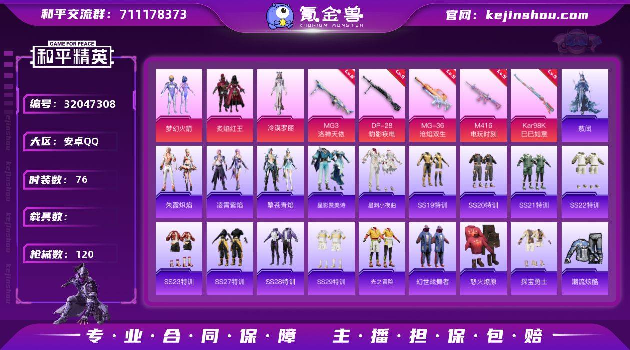 【开学季特惠·3粉装6特效枪·梦幻火箭·地铁天赋·秒发货秒换绑】安卓 手Q-3粉装-6特效枪-0载具-2粉色飞行器-35592热力值-6王牌印记-76套装-120枪皮 【热门品类】:粉装-梦幻火箭 【粉色套装】:粉装-梦幻火箭,粉装-炙焰红王,角色-冷漠罗丽 【粉色枪皮等级】:M416-电玩时刻(五级),Kar98K-巳巳如意(五级),Mk14-福马献瑞(三级),DP-28-豹影疾电(五级),MG3-洛神天依(六级),MG-36-沧焰双生(五级) 【粉色枪皮】:M416-电玩时刻,Kar98K-巳巳如意,Mk14-福马献瑞,DP-28-豹影疾电,MG3-洛神天依,MG-36-沧焰双生 【粉色飞行器】:炫彩糖果飞行器,梦幻火箭飞行器 【粉色降落伞】:PEL轰鸣竞梦者降落伞,洛神天依降落伞,庄周梦蝶降落伞,环太平洋降落伞,垂柳戏鸭降落伞,江南烟雨降落伞,炫彩糖果降落伞 【稀有套装】:套装-雪国风尚,套装-炫彩糖果,套装-星影赞美诗,套装-星渊小夜曲,套装-朱霞炽焰,套装-凌霄紫焰,套装-擎苍青焰,角色-敖闰 【稀有枪皮】:AKM-江南烟雨,AKM-破晓战魂,M16A4-蓝色火焰,SCAR-L-炫彩节奏,SCAR-L-玉兔迎春,SCAR-L-红色方程式,M416-红色方程式,AUG-天降萌叽,QBZ-洛神天依,M762-天降萌叽,M762-彩虹符号,M762-镭射皇者,Mk47-洛神天依,AC-VAL-天降萌叽,蜜獾-娇憨猪猪,ARX-凌霄紫焰,UZI-众神之王,UZI-啾咪啾咪,UZI-天降萌叽,UZI-娇憨猪猪,UMP45-生命誓言,UMP45-诡娃娃,Vector-焰鹰斗篷,汤姆逊-异彩先驱,MP5K-众神之王,MP5K-怪笑疯兔,JS9-凌霄紫焰,P90-飞驰魅影,P90-巳巳如意,Kar98K-梦幻火箭,Kar98K-炫彩节奏,M24-青空秋雨,AWM-焰鹰斗篷,SKS-炫彩节奏,Mini14-炫彩节奏,Mini14-耀粉歌者,Mini14-绯穹魔姬,SLR-众神之王,SLR-娇憨猪猪,S686-彩虹符号,S1897-炫彩节奏,S12K-娇憨猪猪,S12K-幻世战舞者,DBS-焰鹰斗篷,DBS-彩虹甜喵,DBS-彩虹符号,...