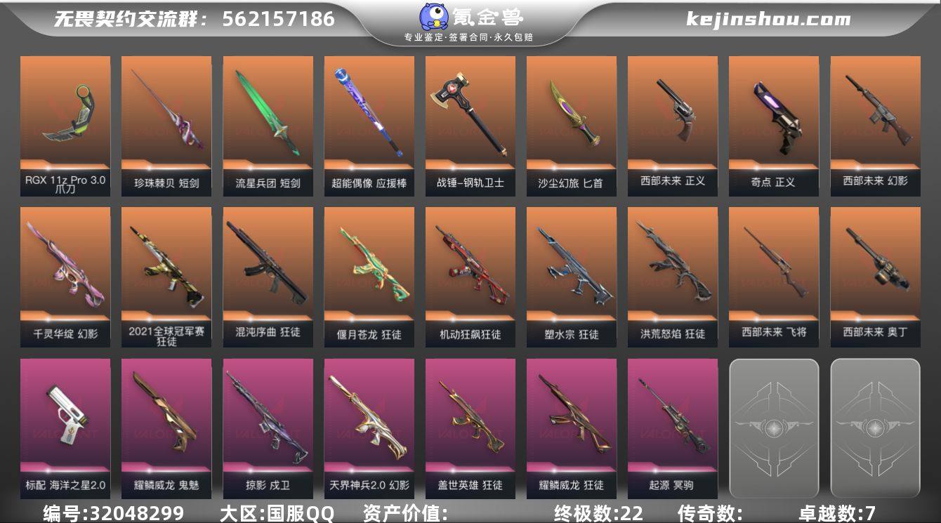 【21冠军精品号】L2465 21冠军狂徒 掠夺戍卫 剥皮小刀 天界幻影 奇点正义 黑波之刃 海洋标配 西部套 盖世狂徒 混沌狂徒 显卡爪刀 莲花幻影 起源冥狙 苍龙狂徒 洪荒狂徒 威龙之刃 耀鳞狂徒 耀鳞鬼魅 塑水宗狂徒 机动狂徒 库存: 44410 剩余VP:73 剩余R点:175 段位:黄金1