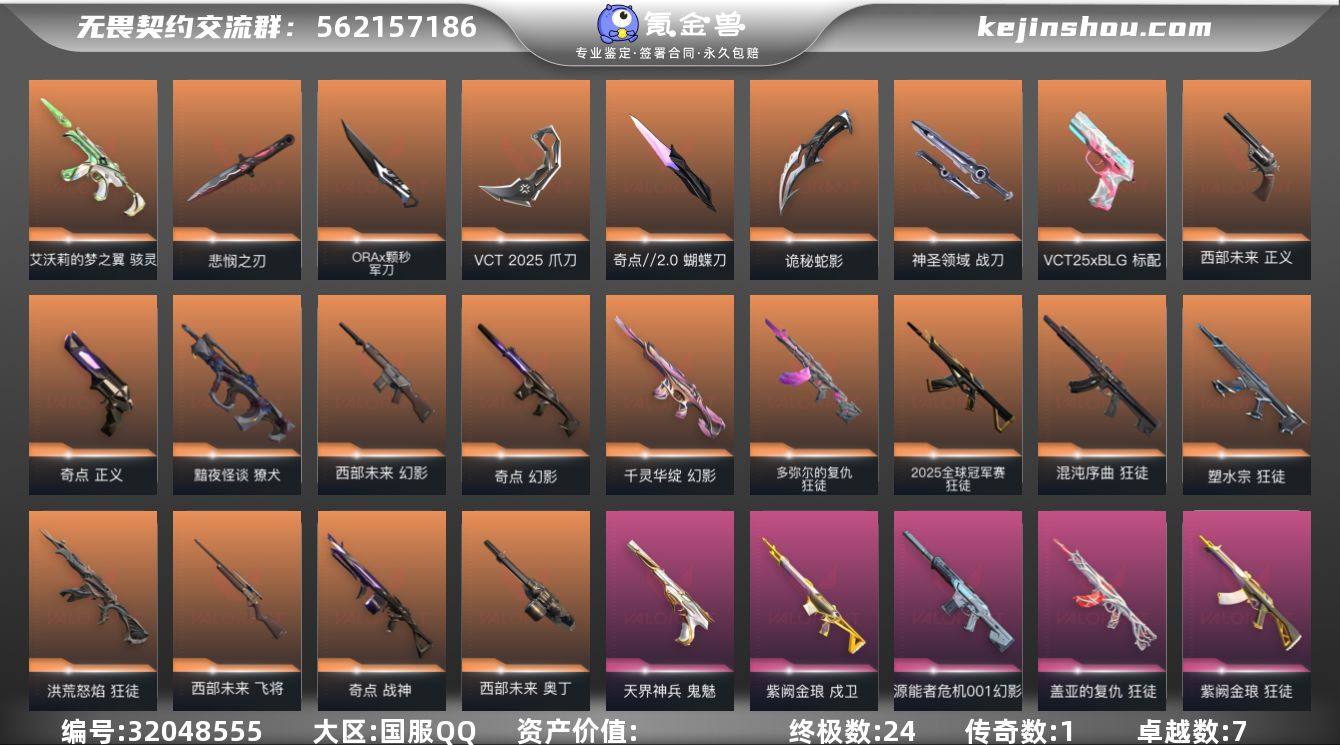 w4238 【性价比】怜悯之刃 塑水狂徒 颗秒军刀 流脓狂徒 多弥尔狂徒 黯夜獠犬 25狂徒 紫金戍卫 猫猫骇灵 天界鬼魅 紫金狂徒 混沌狂徒 盖亚狂徒 莲花幻影 离子狂徒 奇点蝴蝶刀 奇点幻影 西部套 奇点战神 源能者幻影 vct25blg标配 起源大狙 奇点正义 vct25爪刀库存: 52570剩余VP:75剩余R点:20 段位:白银