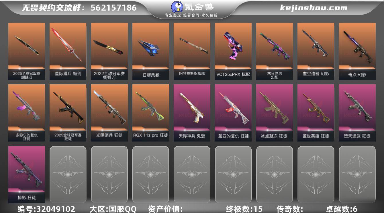 w4265 【性价比】影刃 多弥尔狂徒 25套 泡泡幻影 显卡狂徒 哨兵狂徒 天界鬼魅 掠夺狂徒 虚空幻影 vct25prx标配 堕天狂徒 22蝴蝶刀 大圣狂徒 冰点狂徒 盖亚狂徒 奇点幻影库存: 30955剩余VP:0剩余R点:160 段位:白银