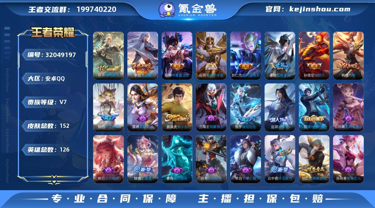 126英雄-152皮肤--V7-7传说【传说】凤求凰 神树通天 地狱火 云霓雀翎 黄金射手座 超时空战士男 仲夏夜之梦 【热门】飞衡 玄嵩 后羿如梦令 时之彼端 拒霜思 神迹守卫钟馗 狮舞东方 朔望之晖 星空之诺 冰冠公主 死神来了 梁祝 燃音魔法 伽罗琥珀纪元 百解令 无限星赏官 原初探秘者 李小龙 暗隐猎兽者 猫狗日记男 特工魅影 曙光守护者 蔷薇恋人 白龙吟 千年之狐 紫霞仙子 幽灵船长 末日机甲男 暗夜贵公子 街头霸王 箭羽风息 德古拉伯爵 赤莲之焰 花好人间 炼金王 凯尔特女王 狰 饕餮 烛龙 重明 穷奇 御狮 御霄 御旌 御銮 朔风刀 混沌棋 疑决卦 醍醐杖 万华元夜 演武夺筹 黑猫爱糖果 驱傩正仪 拳王 女仆咖啡 霸王丸 皇家上将 魅力维加斯 水果甜心 古海寻踪 天穹祈灯 纤云弄巧 繁星吟游 驯魔猎人 鹰眼统帅 魔术师 126英雄-营地ID: