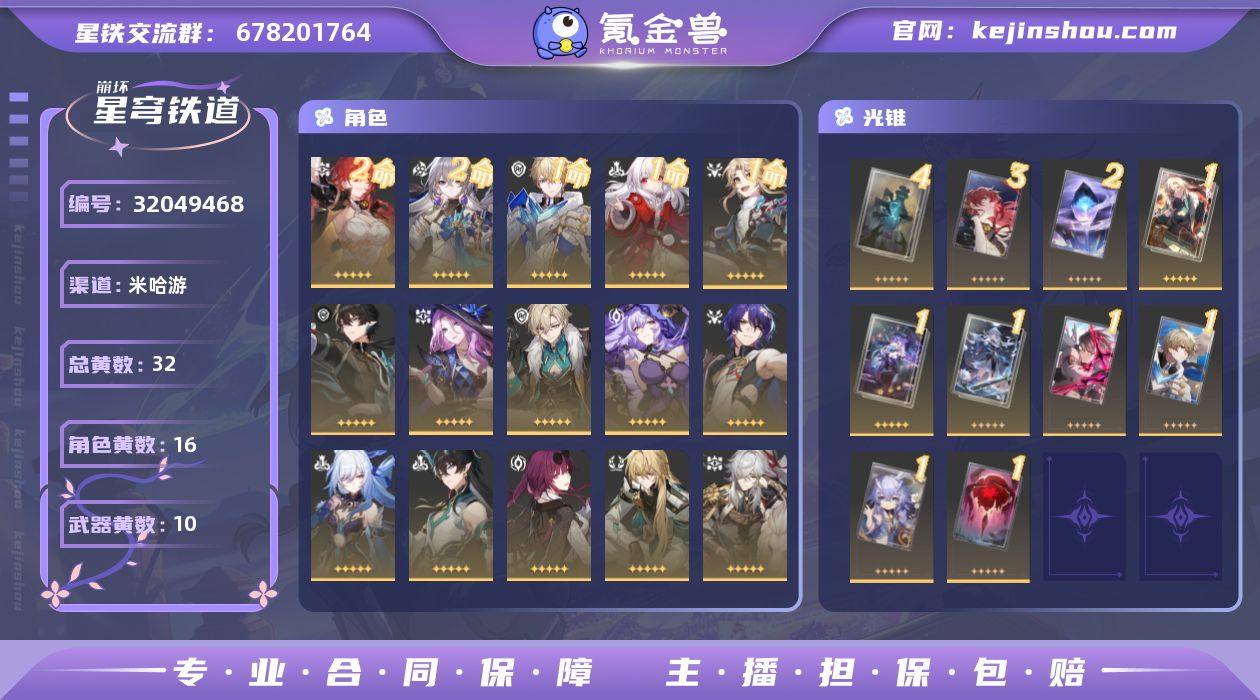 总黄数:32 五星光锥数:10 五星角色数:16 开拓等级:70 开拓者性别:女 星轨专票:0 梦华数量:0 星琼数量:215 2命姬子,2命布洛妮娅,1命杰帕德,1命克拉拉,1命彦卿,0命丹恒·腾荒,0命翡翠,0命砂金,0命黑天鹅,0命真理医生,0命镜流,0命丹恒·饮月,0命卡芙卡,0命罗刹,0命景元,0命希儿 4精孤独的疗愈,3精银河铁道之夜,2精记忆的质料,1精命运从未公平,1精重塑时光之忆,1精此身为剑,1精以世界之名,1精制胜的瞬间,1精时节不居,1精记一位星神的陨落 换绑材料:可提供换绑材料 邮箱状态:不送邮 psn绑定情况:否 taptap绑定情况:否