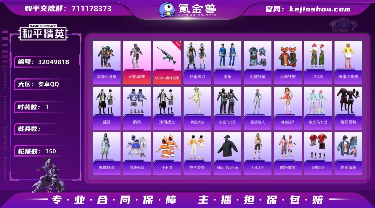 M1046686【身法号满天赋1粉装-5特效枪深海小丑鱼 暗影哥特 小丑鱼 浪漫天命】安卓手Q-1粉装-5特效枪-71套装-150枪皮-5王牌印记-超级王牌2星-33582热力值【1粉装】幻影战神【5特效枪】UMP45-萌骑冒险[2级],AKS-74U-森灵之息[5级],Mk14-福马献瑞[4级],M762-青锋波束[5级],DP-28-豹影疾电[5级]【6稀有】浪漫天命,深海小丑鱼,NV战队服,小丑鱼,暗影哥特,AKM-缤纷海域【7飞行器】云朵驼驼飞行器,破刃行动尾迹,登顶巅峰飞行器,异域银装飞行器,狂鲨锋刃飞行器,炫彩糖果飞行器,马上有福飞行器【1头盔】深海小丑鱼头盔【1背包】深海小丑鱼背包【209其它衣服和枪皮】黄色伏地魔,魅力单车,先驱飞行员,角色-时希公主,海岛探路者,异域银装,SS35特训,神气柴柴,游乐,蝶变,龙魂突击队,红釉青花,猛禽,SS30特训,大橘大利,竞技名士,街头风暴,顶瓜瓜,SS37特训,破蛋小黄鸡,疯狂小兔子,青团波波,马上有钱,SS36特训,星途旅人,雪国风尚,黑色伏地魔,朱霞炽焰,弄潮海豚,狂鲨锋刃,电光马卡龙,迅捷狂鲨,角色-英勇保护者,街头潮人,糖糖葫芦,白色伏地魔,狙击之神,萌鸡速递,Alan Walker,白熊同盟,沙漠毒蛇,蓝色运动,长空猛禽,SS32特训,呆萌铁蟹,鹤鸣,青翼流星,元气之梦,SS34特训,冰河战士,角色-粉雾星云,雨过天青,香桃花海,SS33特训,火种守卫者,快乐星愿,绯格组合,角色-紫俏灵猫,炫彩糖果,特战装甲,SS29特训,福马献瑞,冷焰舞者,耀粉歌者,凌霄紫焰,M16A4-红色方程式,M416-蓝色火焰,DP-28-彩虹符号,破片手榴弹-海盐豹豹,燃烧瓶-福马献瑞,Mk14-薄荷星砂,M16A4-冰河战士,M16A4-雨过天青,平底锅-属我最6,M24-炫彩节奏,AUG-异域银装,AUG-冰晶雪宝,AKM-破晓战魂,VSS-星之彼岸,SKS-迅猛狂鲨,M249-冰晶雪宝,战术弩-极夜星羊,M16A4-蓝色火焰,S686-拉面少女,UZI-红色方程式,AMR-雨过天青,破片手榴弹-咒