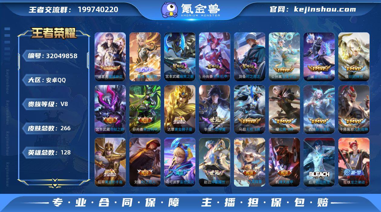 野·金标万战猴子·金标万战曜·星域神启·曜器灵螭龙剑·幽冥之眼·时之思念·狄仁杰神骥赴朔漠·云诺千山·愿照千秋盛·澜逐花归海·妄想实况·无双飞将·武圣·可二次】w17604-安卓Q-128英雄-266皮肤-王者印记-156铭文-贵族积分5w【贵族8】【1典藏·1无双·珍品·3星传说·25传说·1天幕·10按键】【因赛季更新游戏段付以上号为准!】 【英雄全皮】:敖隐全皮 【荣耀典藏】:诸葛亮星域神启 【无双皮肤】:曜器灵螭龙剑 【星元皮肤】:宫本武藏幽冥之眼,孙尚香未来机甲,刘备时之思念 【天幕】:共赏芳华天幕 【传说皮肤】:狄仁杰神骥赴朔漠,后羿神树通天,公孙离云诺千山,女娲愿照千秋盛,桑启鸣野蒿,澜逐花归海,马可波罗妄想实况,吕布怒海麟威,马超无双飞将,赵云淬星耀世,西施游龙清影,李元芳飞鸢探春,铠绛天战甲,镜炽阳神光,虞姬启明星使,关羽武圣,曜云鹰飞将,李信一念神魔,刘备时之恋人,干将莫邪久胜战神,达摩黄金狮子座,百里玄策白虎志,后羿黄金射手座,孙尚香末日机甲,宫本武藏地狱之眼 【限定皮肤】:蔡文姬夏日便利店,大乔绒语心约,虞姬夏日便利店,姜子牙天穹之誓,杨戬破阵退雄兵,狄仁杰阴阳师,赵云皇家上将,墨子神迹守卫,庄周高山流水,高渐离玩趣恶龙,马可波罗妄想实况,狄仁杰魔术师,狄仁杰万华元夜,达摩星际陆战队,达摩沙漠行僧,项羽海滩派对,老夫子醍醐杖,老夫子航海奇遇记,关羽武圣,程咬金演武夺筹,韩信逐梦之影,孙悟空至尊宝,孙悟空孙行者,李元芳云中旅人,虞姬启明星使,钟馗驱傩正仪,杨戬潮玩骑兵,雅典娜单词大作战,雅典娜黎明之约,鬼谷子原初探秘者,苏烈千军破阵,百里玄策白虎志,百里玄策原初追逐者,弈星混沌棋,明世隐疑决卦,裴擒虎李小龙,裴擒虎擒涛扼浪,瑶山海碧波行,云中君纤云弄巧,嫦娥拒霜思,桑启海盐诗旅,艾琳流音漫舞,司空震地狱燃心,张良...