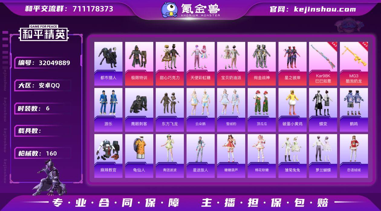 M1046687【男神素材身法号6粉装-4特效枪 巧克力三姐妹 绚金战神,极限特训 都市猎人,暗影哥特,浪漫天命 地铁满天赋】安卓手Q-6粉装-4特效枪-119套装-160枪皮-6王牌印记-荣耀皇冠Ⅳ-43811热力值【6粉装】星之彼岸,宝贝奶油派,天使彩虹糖,甜心巧克力,绚金战神,极限特训【4特效枪】MG3-酷泡奶龙[7级],Kar98K-巳巳如意[5级],DP-28-豹影疾电[5级],Mk14-福马献瑞[1级]【4稀有】都市猎人,暗影哥特,浪漫天命,AKM-奇异狩猎者【6飞行器】炫彩糖果飞行器,狂鲨锋刃飞行器,异域银装飞行器,提桶跑路飞行器,鸡智如我飞行器,顶峰精英尾迹【2头盔】甜心宝贝头盔,幻影战神头盔【3背包】幻影战神背包,甜心宝贝背包,深海小丑鱼背包【265其它衣服和枪皮】风迹短诗,小鸟芋圆,王牌教练,水银刺客,青翼流星,智谋强哥,快闪甜心,明鸳圣池,SS26特训,霓虹街区,湖蓝色名流,漫步者,午间小调,红色运动,森林游猎者,SS37特训,异域银装,灼焰舞者,龙的传人,蓝彩潮人,东方飞龙,SS36特训,巳巳如意,蓝调潮人,柠萌假日,雪绒豹,鱼渊荷华,燕燕于飞,炫彩糖果,福马献瑞,街头潮人,猛禽,星梦畅游,角色-时希公主,粉红小猪,薄荷星砂,光之冒险,萝兰蝴蝶,雪鹰学院,SS25特训,SS33特训,角色-忠真马岱,龟仙人,粉恋花,蓝色运动,恶魔人蛛,SS30特训,野性战心,白色伏地魔,游乐,SS34特训,粉黛兰香,绯格组合,空岛之星,魅力单车,旭日情侣,大橘大利,鹤鸣,冰冻风暴,SS23特训,冷酷挑战者,云朵鹅,雏菊兔兔,鹰眼刺客,街头风暴,糖糖葫芦,黄色运动,狙击之神,旷野奇兵,棉花软糖,SS31特训,顶瓜瓜,缤纷果语,星途旅人,SS22特训,竞技名士,SS35特训,长空猛禽,摇滚舞王,SS32特训,蓝冰羽,萌黄之夏,黄色伏地魔,金耀舞者,SS29特训,龙魂突击队,SS24特训,擎苍青焰,元气之梦,幻世保卫者,晨曦薄雾,凌霄紫焰,紫幽梦,超能勇士,破晓战魂,蝶变,破蛋小黄鸡,甜蜜告白,特战装甲,青团波波,幻世战舞者,麻辣教官,...