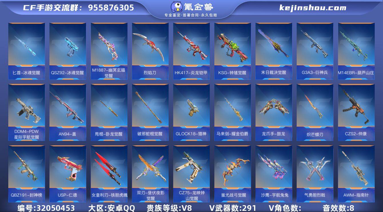 B653016 【极品v8-25王者-满屏三国套装-星象-无双奉先套-绝影过载孟德套-过载文远套-仁德套-妙才套-盖套-81光明套-幻神】 王者V武器数量27 英雄武器数量291 音效卡数量8 万化数量584 VIP等级【文本】VIP8级 【枪王】 【支持】 【是】 【可排位】 三国系列26 音效卡8 狙击枪线4 消灭音效3 语音卡5 抛物线8 三国系列:AK47-奉先,AK47-孟德,M4A1-星象,M4A1-卧龙觉醒,AWM-妙才,MK47-仁德,KSG-孟获,CZS2-仲康,SCAR-文远,蟒蛇-奉先,蟒蛇-妙才,沙鹰-孟德,双管猎枪-文远,柯尔特-仲达,USP-仁德,铁锹-孟德,气勇胆烈戟,龙胆亮银枪,虚空之槌-妙才,赤血刀,左轮-卧龙觉醒,甩棍-卧龙觉醒,穷奇铁扇,虎贲钩镰刀,方天画戟,雌雄双股剑; 音效卡:M200-幻神-现代战场,AK47-无影-电音,巴雷特-毁灭-现代战场,巴雷特-定军-没金饮羽,AK47-孟德-现代战场,MK47-鼓龙-嘴炮,AK47-火麒麟-电音,98K-星神-电音; 狙击枪线:狙击枪线-诸神黄昏,狙击枪线-HeartShot,狙击枪线-荣耀,AWM-裁决-流光之线; 消灭音效:消灭音效-赏金猎人,消灭音效-九尾狐,消灭音效-葫芦娃; 语音卡:晴雅语音卡,雾萌萌语音卡,雨墨语音卡,云悠悠语音卡,美女策划语音卡; 抛物线:抛物线-能量核心,抛物线-九尾狐,抛物线-字,抛物线-绿,抛物线-蓝,抛物线-黄,抛物线-粉,抛物线-诸神黄昏;
