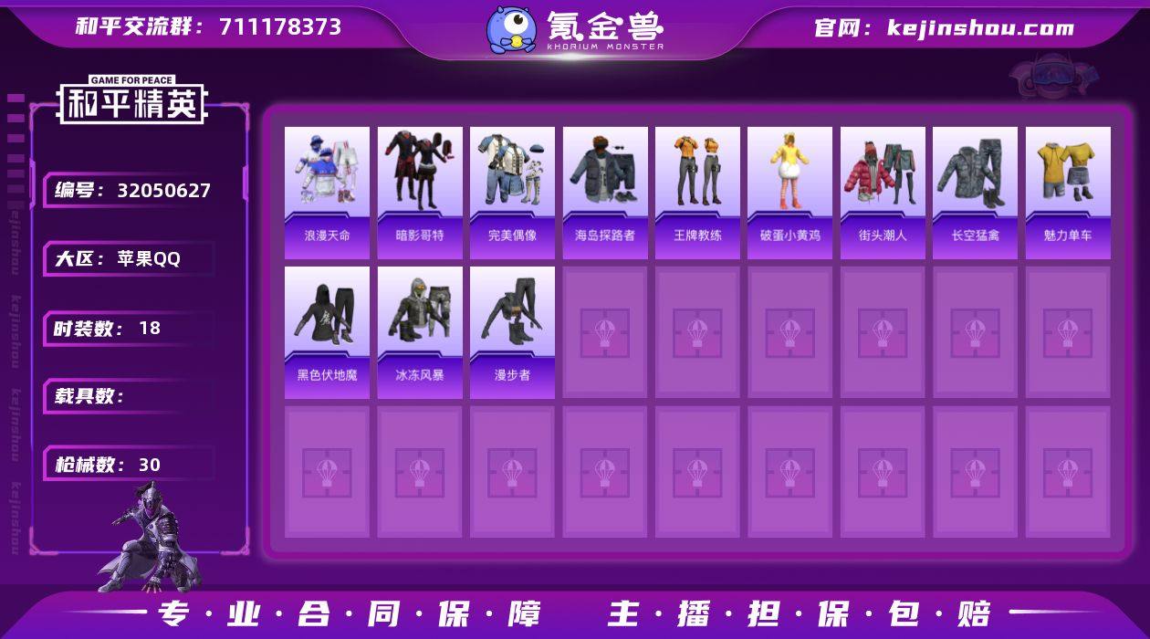 苹果 【小号 浪漫天命/暗影哥特】手Q-0粉装-1特效枪-0载具-1粉色飞行器-5979热力值-2王牌印记-18套装-30枪皮 【热门品类】:套装-浪漫天命,套装-暗影哥特 【粉色枪皮等级】:Mk14-福马献瑞(三级) 【粉色枪皮】:Mk14-福马献瑞 【粉色飞行器】:炫彩糖果飞行器 【粉色降落伞】:炫彩糖果降落伞 【稀有套装】:套装-雪国风尚,套装-马上有钱 【稀有枪皮】:AKM-破晓战魂,SCAR-L-夜灯,SCAR-L-玉兔迎春,M416-蓝色火焰,AUG-耀粉歌者,UZI-炫彩节奏,UMP45-夜灯,VSS-虎痴许褚,S12K-夜灯,S12K-幻影战神,MG3-幻世战舞者 【其他套装】:套装-完美偶像,套装-暗影哥特,套装-浪漫天命,套装-海岛探路者,套装-王牌教练,套装-破蛋小黄鸡,套装-街头潮人,套装-长空猛禽,套装-魅力单车,套装-黑色伏地魔,套装-冰冻风暴,套装-漫步者 【稀有头盔】:梦幻火箭头盔(2级) 【稀有背包】:幻影战神背包(3级) 【营地ID】:942411939