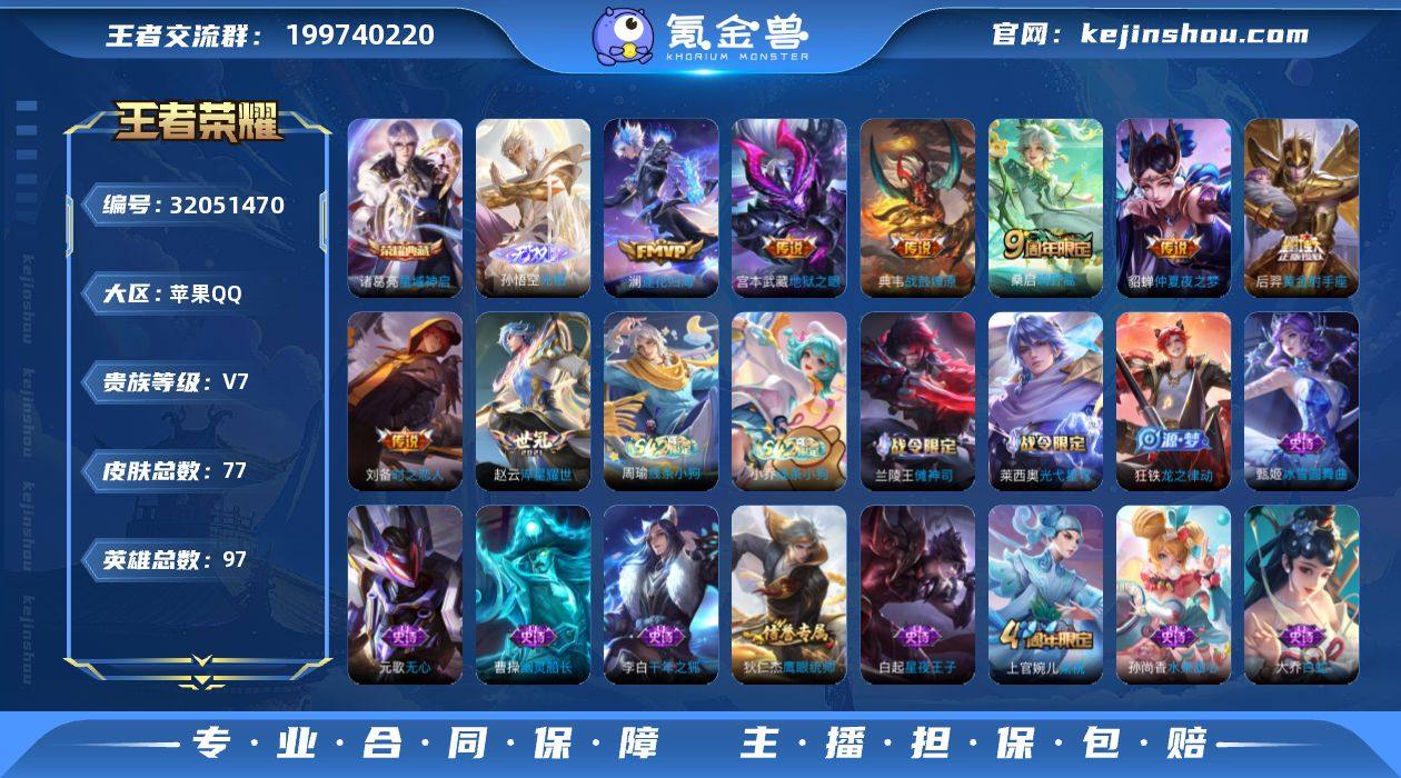 苹果Q-V7-最强王者段位-金标影-97英雄-77皮肤-1典藏皮肤-1无双-8传说-25史诗【英雄全皮】:影全皮【荣耀典藏】:诸葛亮星域神启【无双皮肤】:孙悟空无相【传说皮肤】:桑启鸣野蒿,典韦战鼓燎原,澜逐花归海,赵云淬星耀世,刘备时之恋人,后羿黄金射手座,貂蝉仲夏夜之梦,宫本武藏地狱之眼【限定皮肤】:狄仁杰阴阳师,赵云皇家上将,元歌无心,狄仁杰魔术师,项羽海滩派对,兰陵王金庭之子,沈梦溪大漠名商,上官婉儿梁祝【赛季限定】:兰陵王金庭之子,沈梦溪大漠名商,太乙真人谧流熔炉,亚瑟荣光之誓【战令限定】:兰陵王傩神司,莱西奥光弋星穹,明世隐往忆晖光,周瑜线条小狗,小乔线条小狗【史诗皮肤】:明世隐百晓客,周瑜线条小狗,小乔线条小狗,兰陵王傩神司,莱西奥光弋星穹,狂铁龙之律动,元歌无心,大乔白蛇,上官婉儿梁祝,狄仁杰鹰眼统帅,白起星夜王子,李元芳逐浪之夏,刘邦德古拉伯爵,张飞乱世虎臣,李白千年之狐,曹操幽灵船长,刘禅绅士熊喵,吕布圣诞狂欢,墨子金属风暴,妲己魅力维加斯,孙尚香水果甜心,宫本武藏鬼剑武藏,廉颇地狱岩魂,狄仁杰魔术师,甄姬冰雪圆舞曲,赵云皇家上将【其他皮肤】:鲁班七号班班快跑,妲己线条小狗,安琪拉糖果风暴,虞姬溯影追猎,蚩奼极光幻客,艾琳鹤鸣心笺,明世隐往忆晖光,亚瑟荣光之誓,刘备浪漫序章,戈娅玫蓝誓约,明世隐景韶洛都,影魅影绮裳,太乙真人谧流熔炉,牛魔牛运亨通,沈梦溪大漠名商,兰陵王金庭之子,小乔丁香结,王昭君幻想奇妙夜,刘备纽约教父,狄仁杰阴阳师,花木兰兔女郎,亚瑟死亡骑士,典韦黄金武士,赵云忍炎影,达摩大发明家,阿轲爱心护理,韩信街头霸王,项羽海滩派对,云缨赤焰之缨,镜冰刃幻境,马超幸存者,曜归虚梦演,盘古创世神祝,李信灼热之刃,元歌午夜歌剧院,东皇太一东海龙王,马可波罗激情绿茵,后羿...