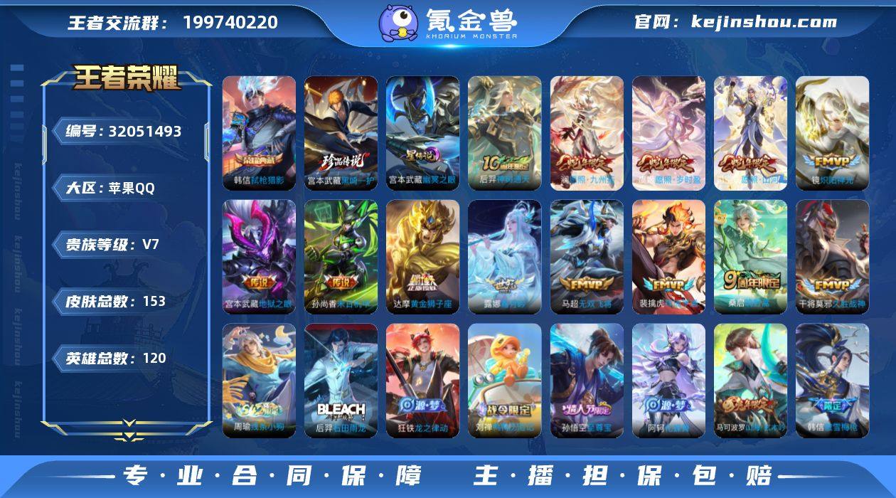 苹果Q-V7-最强王者段位-120英雄-153皮肤-1典藏皮肤-1珍品传说-13传说-44史诗【英雄全皮】:影全皮【荣耀典藏】:韩信弑枪猎影【珍品传说】:宫本武藏黑崎一护【传说皮肤】:后羿神树通天,司空震愿照山河定,澜愿照九州拓,虞姬愿照岁时盈,裴擒虎祥瑞亨通,桑启鸣野蒿,露娜霜月吟,马超无双飞将,镜炽阳神光,干将莫邪久胜战神,达摩黄金狮子座,孙尚香末日机甲,宫本武藏地狱之眼【限定皮肤】:蔡文姬夏日便利店,虞姬夏日便利店,姜子牙天穹之誓,李白谪仙醉月,狄仁杰阴阳师,赵云皇家上将,马可波罗山海玄木吟,狄仁杰魔术师,项羽海滩派对,韩信傲雪梅枪,孙悟空至尊宝,李元芳银河之约,蒙犽狂想玩偶喵,沈梦溪龙舞盛年,刘邦剑破天穹,刘备异域游侠,周瑜熔金海岸【年限皮肤】:马可波罗山海玄木吟,司空震愿照山河定,澜愿照九州拓,虞姬愿照岁时盈【赛季限定】:刘邦剑破天穹,姜子牙天穹之誓,东皇太一噬灭天穹,太乙真人谧流熔炉,钟馗虚灵犬护,亚瑟荣光之誓【战令限定】:李元芳银河之约,蒙犽狂想玩偶喵,蔡文姬夏日便利店,虞姬夏日便利店,亚连破空之剑,孙悟空神迹守卫,百里守约百相守梦,老夫子百相守梦,孙膑茶境仙,马超访茗客,刘禅鸭鸭历险记,沈梦溪鸭鸭历险记,周瑜线条小狗【史诗皮肤】:周瑜线条小狗,后羿石田雨龙,狂铁龙之律动,刘禅鸭鸭历险记,阿轲化蝶舞,赵怀真器灵浮梦炉,孙膑茶境仙,百里守约百相守梦,李白谪仙醉月,马可波罗星界特工,亚连破空之剑,姬小满战舞者,蔡文姬夏日便利店,百里守约真我赫兹,马可波罗山海玄木吟,夏洛特永昼,韩信傲雪梅枪,蒙犽狂想玩偶喵,孙尚香时之恋人,橘右京修罗,不知火舞魅语,李元芳银河之约,公孙离无限星赏官,狄仁杰鹰眼统帅,伽罗箭羽风息,阿轲节奏热浪,李元芳逐浪之夏,蔡文姬舞动绿茵,铠曙光守护者,百里守约特工魅影,...