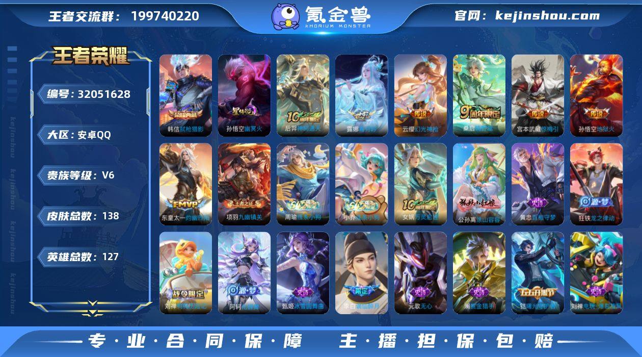安卓Q-V6-最强王者段位-127英雄-138皮肤-1典藏皮肤-1珍品传说-8传说-37史诗【荣耀典藏】:韩信弑枪猎影【珍品传说】:伽罗沧流箭【传说皮肤】:狄仁杰神骥赴朔漠,后羿神树通天,云缨幻光神枪,桑启鸣野蒿,露娜霜月吟,宫本武藏惊梅引,东皇太一灼幽烈阳,孙悟空地狱火【限定皮肤】:蒙犽顽岩魄,姜子牙天穹之誓,李白谪仙醉月,狄仁杰阴阳师,赵云皇家上将,孙尚香蔷薇恋人,元歌无心,狄仁杰魔术师,项羽海滩派对,百里玄策原初追逐者,裴擒虎擒涛扼浪,鲁班大师探海日志,张良古海寻踪,沈梦溪龙舞盛年,李元芳蔬乡物语,刘邦剑破天穹【赛季限定】:裴擒虎擒涛扼浪,鲁班大师探海日志,张良古海寻踪,刘邦剑破天穹,姜子牙天穹之誓,东皇太一噬灭天穹,太乙真人谧流熔炉,钟馗虚灵犬护,甄姬逆浪荇歌,亚瑟荣光之誓,百里玄策原初追逐者,项羽九幽镇关【战令限定】:李元芳蔬乡物语,孙膑茶境仙,马超访茗客,刘禅鸭鸭历险记,沈梦溪鸭鸭历险记,周瑜线条小狗,小乔线条小狗【史诗皮肤】:太乙真人瓦猫非猫,周瑜线条小狗,小乔线条小狗,项羽九幽镇关,女娲万灵启世,公孙离涂山容容,黄忠百相守梦,狂铁龙之律动,刘禅鸭鸭历险记,阿轲化蝶舞,孙膑茶境仙,李白谪仙醉月,蒙犽顽岩魄,刘禅电玩爆裂旋风,元歌无心,澜赏金猎手,百里玄策原初追逐者,狄仁杰鹰眼统帅,伽罗箭羽风息,孙策猫狗日记,白起星夜王子,程咬金功夫厨神,李元芳逐浪之夏,铠曙光守护者,兰陵王暗隐猎兽者,夏侯惇乘风破浪,吕布末日机甲,曹操幽灵船长,墨子金属风暴,妲己魅力维加斯,孙尚香水果甜心,孙尚香蔷薇恋人,宫本武藏鬼剑武藏,廉颇地狱岩魂,狄仁杰魔术师,甄姬冰雪圆舞曲,貂蝉圣诞恋歌,赵云皇家上将【其他皮肤】:鲁班七号班班快跑,妲己线条小狗,虞姬溯影追猎,艾琳鹤鸣心笺,张良罗小黑战记,亚瑟荣光之誓,鬼谷子...