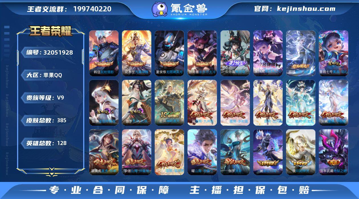 苹果Q-V9-最强王者段位-128英雄-385皮肤-4典藏皮肤-1无双-2珍品传说-44传说-109史诗【英雄全皮】:孙权全皮,苍全皮,空空儿全皮【荣耀典藏】:夏侯惇无限飓风号,孙尚香杀手不太冷,花木兰九霄神辉,韩信弑枪猎影【无双皮肤】:公孙离离恨烟【珍品传说】:安琪拉酷洛米之心,嫦娥器灵落星盏【传说皮肤】:马超神骥逐星野,后羿神树通天,后羿千劫归真,司空震愿照山河定,女娲愿照千秋盛,妲己愿照众生和,澜愿照九州拓,蔡文姬愿照福禄聚,虞姬愿照岁时盈,云缨幻光神枪,嬴政玄雷天君,桑启鸣野蒿,庄周牧神诗旅,澜逐花归海,上官婉儿妄想奇谈,伽罗炽翼辉光,小乔山海琳琅生,曜山海苍雷引,李信山海炽霜斩,李白诗剑行,不知火舞绯月行,马超无双飞将,女娲补天,孙策末日机甲,裴擒虎寅虎赤拳,鲁班七号寅虎瑞焰,赵云淬星耀世,王昭君乞巧织情,李元芳飞鸢探春,兰陵王默契交锋,铠绛天战甲,镜炽阳神光,虞姬启明星使,关羽武圣,曜云鹰飞将,李信一念神魔,伽罗太华,干将莫邪久胜战神,达摩黄金狮子座,梦奇胖达荣荣,后羿黄金射手座,貂蝉仲夏夜之梦,宫本武藏地狱之眼,孙悟空地狱火【限定皮肤】:白起狰,公孙离离恨烟,姜子牙天穹之誓,狄仁杰阴阳师,廉颇寅虎御盾,小乔山海琳琅生,赵云皇家上将,嬴政白昼王子,鲁班七号寅虎瑞焰,庄周蜃楼王,庄周高山流水,高渐离玩趣恶龙,孙膑妖精王,孙膑天狼运算者,白起夜都怪侠,芈月重明,芈月白晶晶,吕布猎兽之王,元歌云间偶戏,元歌无心,夏侯惇朔风刀,甄姬游园惊梦,曹操烛龙,典韦穷奇,典韦岱宗,马可波罗暗影游猎,马可波罗山海玄木吟,狄仁杰魔术师,狄仁杰万华元夜,达摩星际陆战队,达摩沙漠行僧,项羽海滩派对,项羽霸王别姬,老夫子醍醐杖,关羽武圣,程咬金演武夺筹,韩信飞衡,兰陵王默契交锋,兰陵王金庭之子,花木兰默契交锋,不知火...