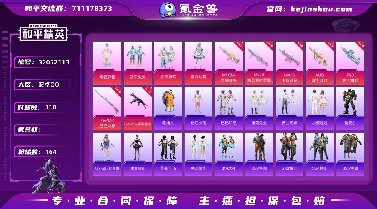 安卓 手Q-4粉装-7特效枪-0载具-4粉色飞行器-52024热力值-4王牌印记-110套装-164枪皮 【热门品类】:套装-SS1特训,套装-龟仙人,套装-粉红小猪 【粉色套装】:角色-烟云彩露,粉装-冠军兔兔,粉装-金丰海韵,粉装-雪月幻音 【粉色枪皮等级】:M16A4-垂柳戏鸭(七级),M416-电玩时刻(五级),AUG-暖羊咩咩(五级),UMP45-宇宙意志(三级),P90-金丰海韵(五级),Kar98K-巳巳如意(五级),Mk14-精灵梦叶罗丽(六级) 【粉色枪皮】:M16A4-垂柳戏鸭,M416-电玩时刻,AUG-暖羊咩咩,UMP45-宇宙意志,P90-金丰海韵,Kar98K-巳巳如意,Mk14-精灵梦叶罗丽 【粉色飞行器】:拂晓神骑飞行器,冠军兔兔飞行器,深渊漩涡飞行器,凤舞九天飞行器 【粉色降落伞】:梦幻火箭降落伞,洛神天依降落伞,天之羽翼降落伞,垂柳戏鸭降落伞,炎氏战神降落伞,莲影清波降落伞,江南烟雨降落伞,星空武士降落伞,精灵梦叶罗丽降落伞,金丰海韵降落伞,忍者神龟降落伞,宇宙意志降落伞,千金淑猫降落伞,盛世惊鸿降落伞 【稀有套装】:套装-龟仙人,套装-巳巳如意,套装-雏菊兔兔,套装-萝兰蝴蝶,套装-小熊娃娃,角色-拉斐尔,角色-狂花道·雅典娜,角色-摩登魅猫,套装-燕燕于飞,套装-鱼渊荷华,套装-混沌火种 【稀有枪皮】:AKM-墨染幽兰,AKM-江南烟雨,AKM-生命誓言,M16A4-千金淑猫,SCAR-L-炫彩节奏,SCAR-L-玉兔迎春,SCAR-L-红色方程式,M416-蓝色火焰,GROZA-影袭,GROZA-懵萌河马,GROZA-生命誓言,GROZA-田园牧歌,GROZA-晶梦幻蝶,AUG-天降萌叽,AUG-耀粉歌者,QBZ-洛神天依,M762-天降萌叽,M762-生命誓言,Mk47-妙红点点,Mk47-洛神天依,Mk47-炫光之旅,G36C-懵萌河马,AC-VAL-天降萌叽,蜜獾-天降萌叽,蜜獾-娇憨猪猪,UZI-天降萌叽,UZI-娇憨猪猪,UZI-生命誓言,UZI-盛世惊鸿,UMP45-夜灯,UMP45-春暖花开,UMP45-生命誓言,Vec...