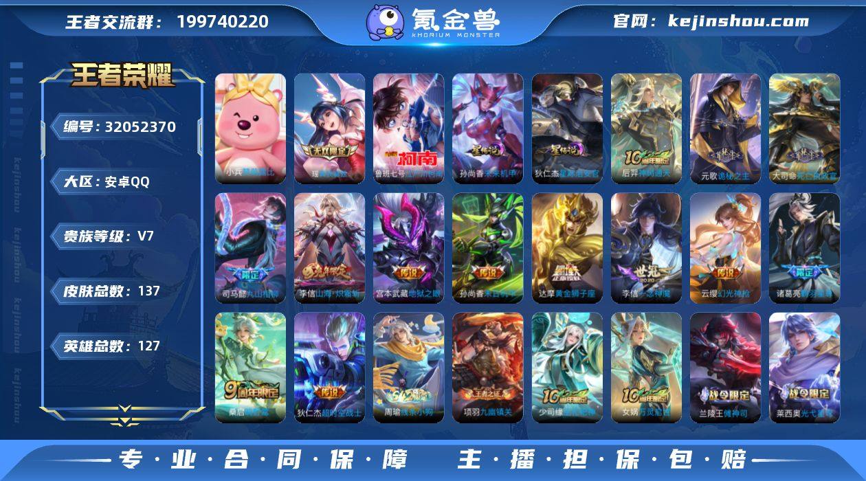 MWZ105120【女号V7 1无双 1珍品 1小兵皮 13传说 2星传说 打野25段】安卓Q-137皮肤-127英雄 【无双皮肤】 真我赫兹 【珍品传说】 江户川柯南 【小兵皮肤】 赞萌露比 【传说皮肤】 诡秘之主 神树通天 鹤羽星尊 鸣野蒿 死亡执政官 九山相柳 幻光神枪 山海·炽霜斩 黄金狮子座 超时空战士 地狱之眼 一念神魔 末日机甲 【星传说】星际治安官 未来机甲 【史诗皮肤】 破空之剑 撼地雄心 布丁狗之约 谧流熔炉 涂山容容 至尊宝 灵蛊蚀心 龙之律动 地狱燃心 陌上桑 线条小狗 九幽镇关 谪仙醉月 星界特工 踏浪烽翎 赞萌露比 幻珠鲛人 百相守梦 织梦人 巫礼祀神 光弋星穹 万灵启世 傩神司 幽灵船长 女仆咖啡 魔术师 鹰眼统帅 圣诞恋歌 鬼剑武藏 水晶猎龙者 修罗 曙光守护者 银河之约 紫霞仙子 末日机甲 龙骑士 雪上飞焰 水果甜心 乘风破浪 冰冠公主 天秀·启明 皇家上将 无心 节奏热浪 星夜王子 特工魅影 原初追逐者 【勇者皮肤】 神迹守卫 探海日志 敬我三分 雾都夜雨 天穹祈灯 星梦巡礼 命运加冕 铁骨偃魂 苍林狼骑 零食大作战 危途狂花 糖果风暴 溯影追猎 噬灭天穹 苍云破阵 夏日便利店 天穹之誓 剑破天穹 西部游侠 熔金海岸 龙舞盛年 灵野札记 春野闲踪 春野闲踪 虚灵犬护 浪漫序章 雪境奇遇 玫蓝誓约 逆浪荇歌 锦麟游梦 克喵 逆浪荇歌 往忆晖光 谧流熔炉 劲辣红锅 小满鸭 玩趣恶龙 万象初新 龙腾万里 街头霸王 阿尔法小队 乓乓大师 野性能量 天使之翼 幻想奇妙夜 海滩派对 花好人间 擒涛扼浪 大漠名商 西部大镖客 潮玩探月行 玩偶对对碰 白色死神 拳王 少女阿狸 阴阳师 黄金武士 【稀有英雄】 敖隐 不知火舞 橘右京 夏洛特 娜可露露 韩信 艾琳 赵云 营地ID:1684587219