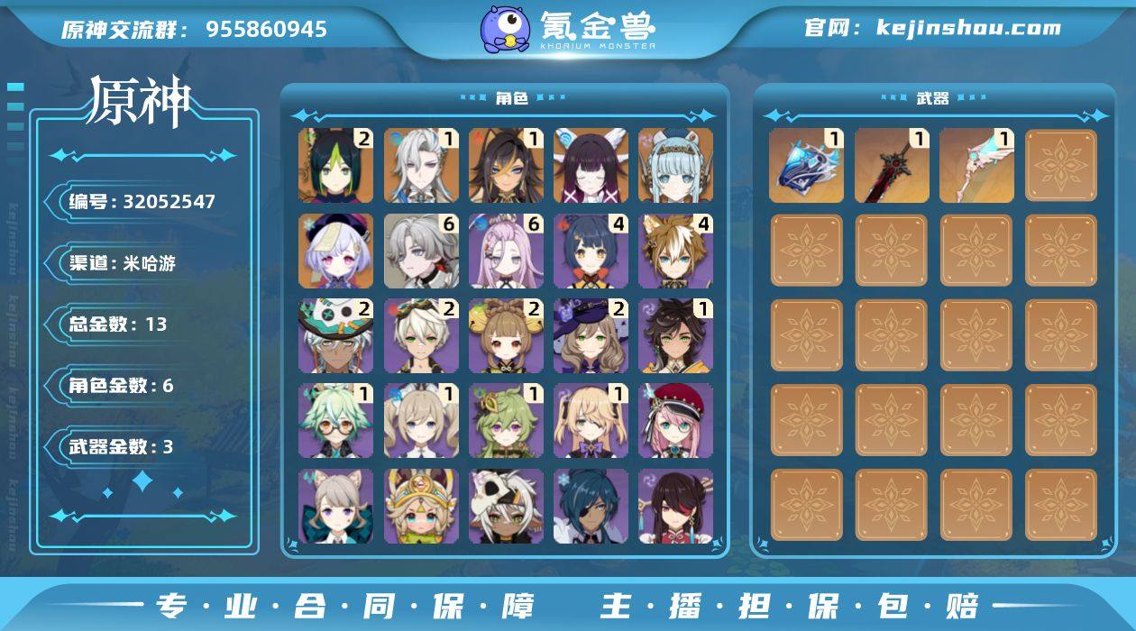 邮箱: 未绑定 总黄数: 13 冒险等级: 55 2命金色角色: 二命提纳里 1命金色角色: 一命迪希雅,一命那维莱特 0命金色角色: 七七,伊涅芙,哥伦比娅 拥有武器: 狼的末路,天空之翼,万世流涌大典 1精武器: 狼的末路,天空之翼,万世流涌大典