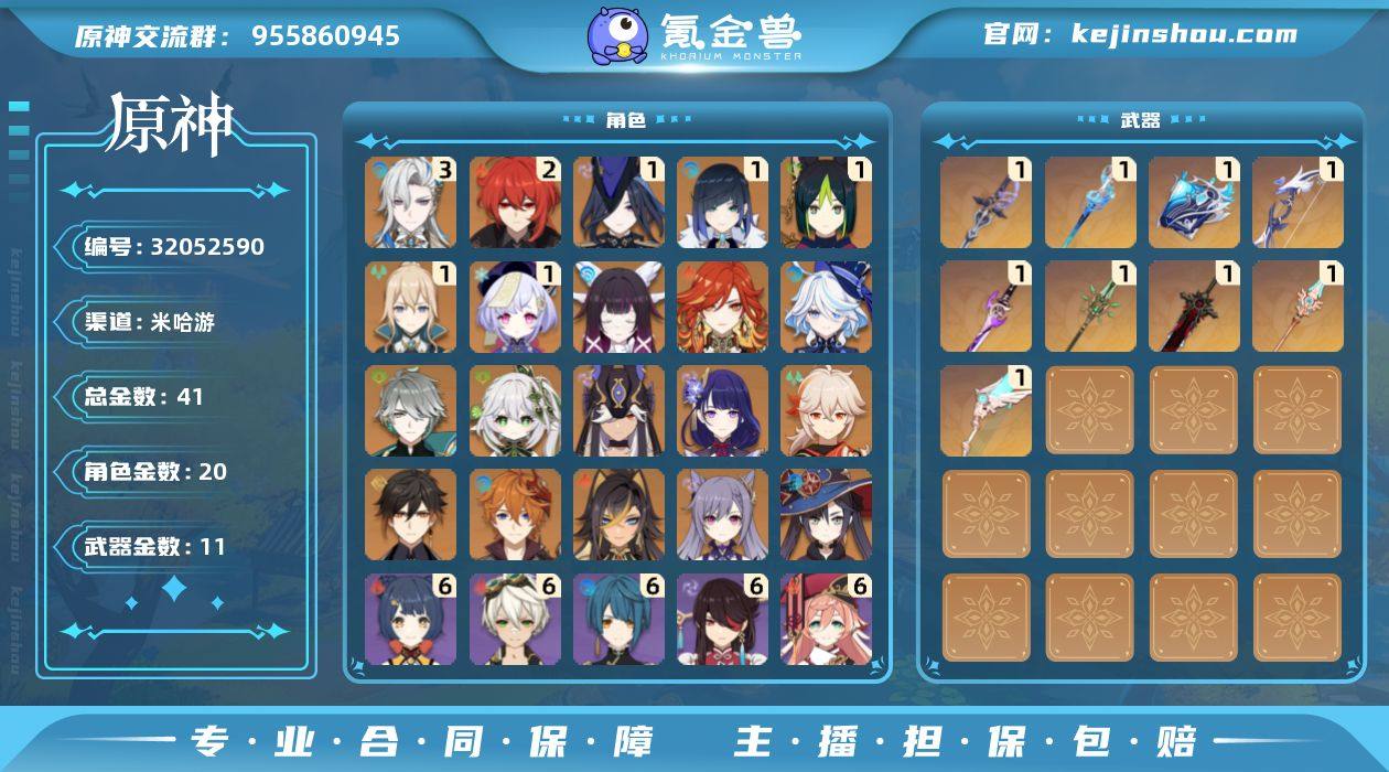 邮箱: 送网易邮箱 总黄数: 41 冒险等级: 59 3命金色角色: 三命那维莱特 2命金色角色: 二命迪卢克 1命金色角色: 一命七七,一命琴,一命夜兰,一命提纳里,一命克洛琳德 0命金色角色: 枫原万叶,刻晴,达达利亚,钟离,莫娜,雷电将军,赛诺,纳西妲,艾尔海森,迪希雅,芙宁娜,玛薇卡,哥伦比娅 拥有武器: 狼的末路,天空之翼,雾切之回光,和璞鸢,天空之脊,若水,万世流涌大典,静水流涌之辉,赦罪 1精武器: 狼的末路,天空之翼,雾切之回光,和璞鸢,天空之脊,若水,万世流涌大典,静水流涌之辉,赦罪