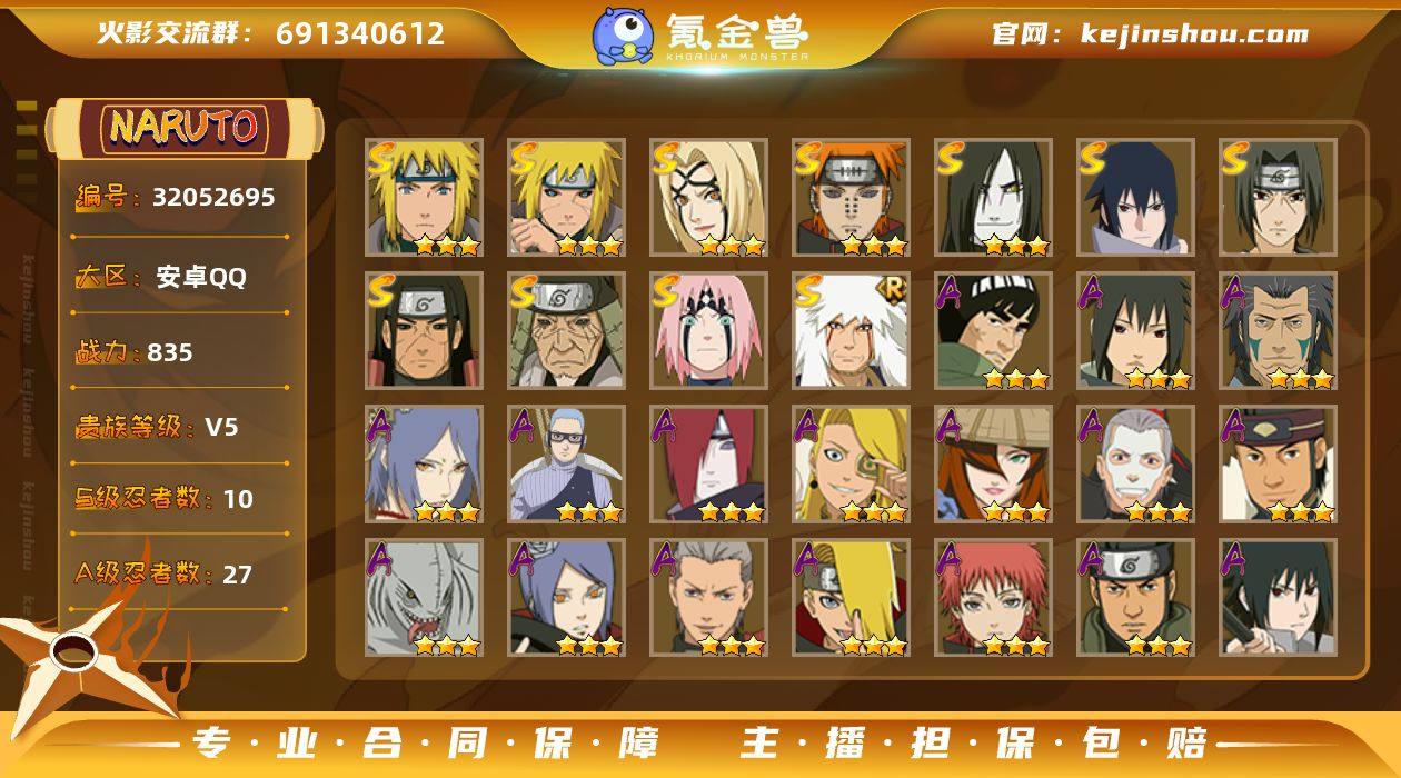 MHY3909【S忍者10 A忍者27 16通灵】【安卓Q-1300区-145级-V5-835万战力】【S级】宇智波佐助「永恒万花筒」 春野樱「忍界大战」 宇智波鼬「须佐能乎」 猿飞日斩「秽土转生」 佩恩「天道」 自来也「舞之豪杰」 纲手「百豪」 大蛇丸 千手柱间「秽土转生」 波风水门【A级】迈特凯「青春爆炸」 秋道丁次「忍界大战」 干柿鬼鲛 宇智波佐助「疾风传咒印」 飞段 漩涡鸣人「九尾查克拉」 迪达拉 旗木卡卡西「万花筒写轮眼」 波风水门「青年」 黑土「四代目土影」 不动 长十郎「六代目水影」 我爱罗「忍界大战」 宇智波泉奈 迈特凯 猿飞日斩「火影继承人」 小南 大蛇丸「晓」 猿飞阿斯玛 我爱罗「疾风传」 蝎 药师兜「半蛇斗篷」 宇智波佐助「须佐能乎」 照美冥「五代目水影」 长门「青年」 宇智波佐助「万花筒写轮眼」 飞段「死司凭血」【B级】君麻吕 佐井 旗木卡卡西「暗部」 宇智波鼬「红夜之刃」 春野樱「忍者少女」 天天「疾风传」 大蛇丸「木叶三忍」 夕日红 白 油女志乃「新春限定」 宇智波佐助「咒印」 秋道丁次「疾风传」 漩涡玖辛奈 李洛克「木叶飞人」 羽高「新佩恩六道」 春野樱「疾风传」 奥摩伊 日向雏田「疾风传」 药师兜 木叶丸「疾风传」 漩涡鸣人「中秋限定」 日向宁次「疾风传」 大和「暗部」 重吾 枫「七尾人柱力」 重吾「忍界大战」 汉「新佩恩六道」 黑土 夕日红「和服」 夕日红「冬日限定」 山中井野「疾风传」 勘九郎「疾风传」 李洛克「疾风传」 矢仓「新佩恩六道」 重吾「鹰」 御手洗红豆「新春限定」 日向雏田「忍者之路」 鬼灯满月「忍刀七人众」 手鞠「疾风传」 宇智波佐助「疾风传」 赤土 漩涡鸣人「疾风传」 日向花火「武当宗师」 李洛克「截拳宗师」 宇智波带土「少年」 惠比寿 野原琳 佩恩「地狱道」 旗木卡卡西「少年」 卯月夕颜 漩涡玖辛奈「新春限定」 漩涡鸣人「第一尾」 大和 御手洗...