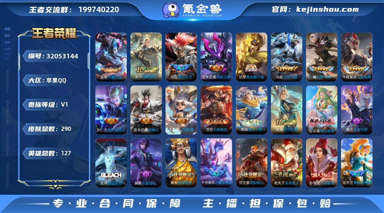 无二次 苹果Q-V7-最强王者段位-127英雄-290皮肤-1典藏皮肤-10传说-68史诗 QW26310 【英雄全皮】:敖隐全皮 【荣耀典藏】:吕布千魇归渊 【传说皮肤】:后羿神树通天,马超琥珀纪元,宫本武藏惊梅引,马超无双飞将,李元芳飞鸢探春,曜云鹰飞将,干将莫邪久胜战神,达摩黄金狮子座,宫本武藏地狱之眼,狄仁杰超时空战士 【限定皮肤】:白起狰,姜子牙天穹之誓,狄仁杰阴阳师,虞姬凯尔特女王,赵云皇家上将,嬴政白昼王子,庄周蜃楼王,高渐离死亡摇滚,高渐离玩趣恶龙,孙膑妖精王,扁鹊炼金王,芈月重明,吕布猎兽之王,元歌无心,夏侯惇朔风刀,曹操烛龙,典韦穷奇,典韦蓝屏警告,狄仁杰魔术师,狄仁杰万华元夜,达摩沙漠行僧,项羽海滩派对,老夫子圣诞老人,老夫子醍醐杖,程咬金演武夺筹,兰陵王金庭之子,花木兰青春决赛季,亚瑟狮心王,孙悟空大圣娶亲,牛魔御旌,李元芳云中旅人,钟馗驱傩正仪,杨玉环遇见飞天,女娲朔望之晖,干将莫邪冰霜恋舞曲,雅典娜黎明之约,蔡文姬繁星吟游,太乙真人饕餮,鬼谷子原初探秘者,鬼谷子五谷丰年,百里玄策原初追逐者,弈星混沌棋,梦奇顽趣,沈梦溪大漠名商,明世隐疑决卦,裴擒虎李小龙,裴擒虎擒涛扼浪,狂铁御狮,米莱狄御霄,云中君纤云弄巧,盾山御銮,上官婉儿梁祝,嫦娥拒霜思,西施玲珑珍味,鲁班大师探海日志,桑启海盐诗旅,戈娅驭风魔法,艾琳女武神,艾琳流音漫舞,司空震地狱燃心,阿古朵江河有灵,张良古海寻踪,蒙犽百解令,蒙恬荣光圣徽,高渐离燃音魔法,妲己灵卜魔法,鬼谷子天穹祈灯,马超琥珀纪元,姬小满妄想食味,沈梦溪龙舞盛年,刘邦剑破天穹,程咬金群星魔术团,周瑜熔金海岸 【赛季限定】:亚瑟狮心王,庄周蜃楼王,孙膑妖精王,扁鹊炼金王,虞姬凯尔特女王,白起狰,太乙真人饕餮,曹操烛龙,芈月重明,典韦穷奇,狂铁御狮,米莱狄御霄...