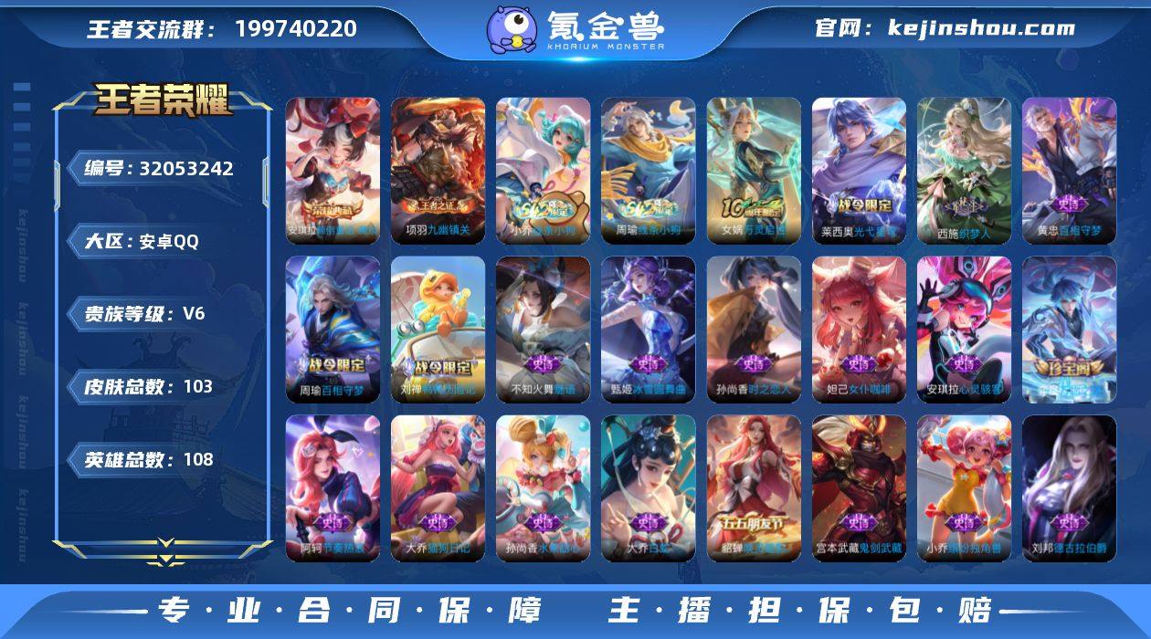 安卓Q-V6-至尊星耀I段位-108英雄-103皮肤-1典藏皮肤-36史诗HZ263508 【英雄全皮】:空空儿全皮 【荣耀典藏】:安琪拉颠倒童话魔镜 【限定皮肤】:狄仁杰阴阳师,赵云皇家上将,狄仁杰魔术师,项羽海滩派对,西施玲珑珍味 【赛季限定】:东皇太一噬灭天穹,太乙真人谧流熔炉,钟馗虚灵犬护,甄姬逆浪荇歌,亚瑟荣光之誓,项羽九幽镇关 【战令限定】:西施玲珑珍味,刘禅鸭鸭历险记,沈梦溪鸭鸭历险记,周瑜百相守梦,孙策百相守梦,莱西奥光弋星穹,明世隐往忆晖光,周瑜线条小狗,小乔线条小狗 【史诗皮肤】:周瑜线条小狗,小乔线条小狗,项羽九幽镇关,女娲万灵启世,莱西奥光弋星穹,西施织梦人,黄忠百相守梦,周瑜百相守梦,刘禅鸭鸭历险记,弈星万物之道,貂蝉唤灵魅影,沈梦溪月团寄思,孙尚香时之恋人,不知火舞魅语,大乔白蛇,大乔猫狗日记,阿轲节奏热浪,李元芳逐浪之夏,刘禅天才门将,蔡文姬舞动绿茵,安琪拉心灵骇客,雅典娜冰冠公主,小乔缤纷独角兽,刘邦德古拉伯爵,张飞乱世虎臣,刘禅绅士熊喵,妲己女仆咖啡,妲己魅力维加斯,嬴政暗夜贵公子,孙尚香水果甜心,宫本武藏鬼剑武藏,廉颇地狱岩魂,狄仁杰魔术师,王昭君偶像歌手,甄姬冰雪圆舞曲,貂蝉圣诞恋歌,赵云皇家上将 【其他皮肤】:鲁班七号班班快跑,妲己线条小狗,桑启线条小狗,虞姬溯影追猎,艾琳鹤鸣心笺,张良罗小黑战记,明世隐往忆晖光,亚瑟荣光之誓,鬼谷子克喵,莱西奥踏浪烽翎,空空儿戏梦巡演,庄周锦麟游梦,孙策百相守梦,甄姬逆浪荇歌,白起死霸装,姬小满小满鸭,露娜命运加冕,阿古朵布丁狗之约,张良灵野札记,苏烈春野闲踪,沈梦溪鸭鸭历险记,钟馗虚灵犬护,刘备浪漫序章,戈娅玫蓝誓约,明世隐景韶洛都,少司缘灵卦秘语,姜子牙星梦巡礼,西施雪境奇遇,典韦铁骨偃魂,太乙真人谧流熔炉,苍苍林狼骑,东皇太一噬...