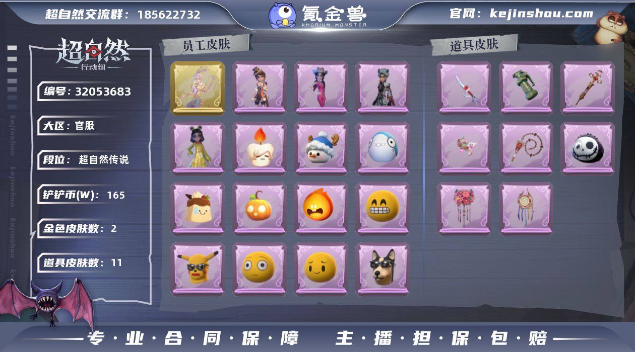 白菜出官服双金四紫海月息潮莲华渡热门道具很多金皮2;紫皮4;道具皮11;皮肤:薇薇安-海月息潮,逍遥-莲华渡,爱丽丝-耀眼的你,阿念-庆宴绮愿,小黄-呱呱雨衣,艾伦-黎明猎手;道具:急救包-蔷薇物语,闪光弹-金戈玄铜,音响-鸣沙鼓,除颤仪-冰晶般的代价,腰包-惊魂娃娃,急救包-末章心跳,额外的背包-飞花令,电击枪-甜蜜泡泡枪,刺刀-铂刺与红萼,长鞭-缚誓之锁,腰包-红运福虎;饰品:头饰-烛光纪念,头饰-面具马头套,头饰-马上有钱,头饰-大葱明头套,头饰-呆滞头套,头饰-火爆了头套,头饰-太空鲨头套,头饰-嘻嘻头套,头饰-鱼头怪头套,头饰-萨卡班甲鱼头套,头饰-饺饺者头套,头饰-烈焰红唇头套,头饰-蒜了八,头饰-惊魂南瓜头套,头饰-哈士奇头套,头饰-樱桃奶油布丁,头饰-雪墩墩头套,头饰-滑稽头套,头饰-卑微头套,头饰-像素朋克墨镜,头饰-后室幸存者头套,挂饰-不朽的今夜,挂饰-拂云仙,挂饰-尘封旧事,挂饰-糖果守卫,背饰-夜浮船,背饰-牛啤背包,背饰-蝶恋花;动作:动作-新年摇,动作-luvaboy,动作-sugar摇,动作-舞台中心,动作-抬手,动作-举牌,动作-要糖,动作-蝴蝶步;工牌背景:工牌背景-鸢尾花,工牌背景-甜心的囚笼,工牌背景-圣光之誓,工牌背景-春和景明,工牌背景-永夜巡礼,工牌背景-粉嫩小海狸;工牌动作:工牌动作-轻躯鹤立,工牌动作-拜年,工牌动作-虔诚之姿,工牌动作-春色盈怀;员工:爱德华,薇薇安,艾伦,零,逍遥,莉莉,小满,爱丽丝,小黄,兰,巫铃儿,阿念,临云;累充324元;铲铲币16.5万;金砖8;段位:超自然传说132;魔盒等级:80