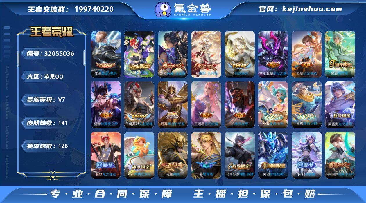 金色仲夏夜之梦 实名: 可修改 贵族等级: V7 英雄数: 126 皮肤数: 141 荣耀水晶: 鸣剑·曳影 珍品传说: 时之奇旅-孙策 传说皮: 黄金射手座,绛天战甲,久胜战神,炽阳神光,仲夏夜之梦,地狱之眼,乞巧织情,幻光神枪,神骥·逐星野 限定皮: 冰锋战神,神威,神器·万象笔,山海·玄木吟,鸣野蒿,愿照·九州拓
