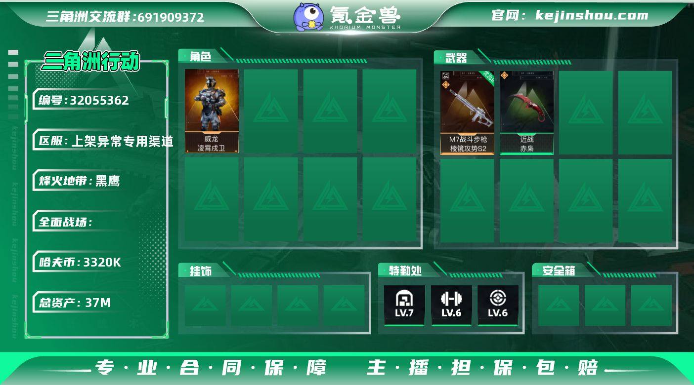 实名:不可二次实名 总资产:37M 哈夫币:3320K 烽火地带段位:黑鹰 烽火地带等级:60 7级仓库,6级训练中心,6级靶场,0级潜水中心,0级收藏室 战术部门等级:0 战斗部门等级:0 医疗部门等级:2 后勤部门等级:0 曼德尔砖-棱镜攻势S2:0