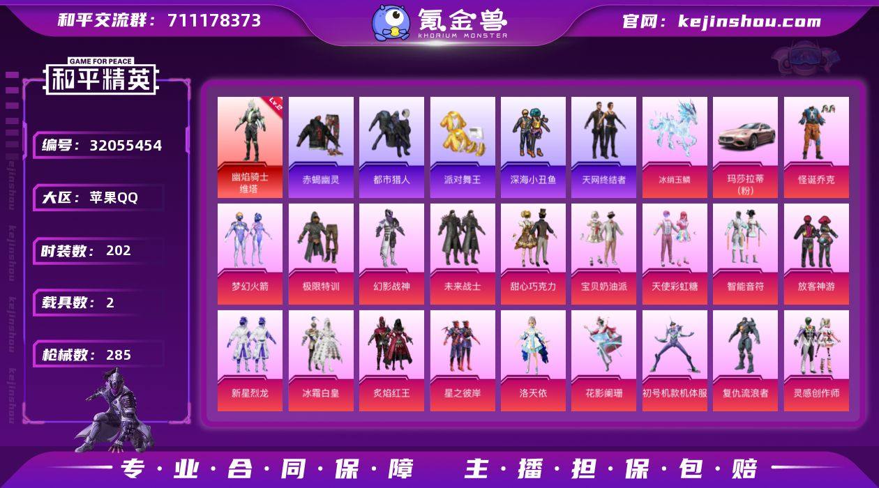 苹果 手Q-1神装-22粉装-19特效枪-2载具-9粉色飞行器-106382热力值-18王牌印记-202套装-285枪皮 【红色神装等级】:幽焰骑士-维塔(二级) 【红色角色神装】:幽焰骑士-维塔 【热门品类】:粉装-怪诞乔克,粉装-梦幻火箭,套装-浪漫天命,套装-赤蝎幽灵,套装-都市猎人,套装-派对舞王,套装-深海小丑鱼,套装-小丑鱼,角色-军刀雅典娜,套装-天网终结者,套装-龟仙人,套装-潮萌小黄鸭,套装-暗影哥特,套装-红红火火,角色-Mark.06 【粉色套装】:粉装-极限特训,粉装-幻影战神,粉装-未来战士,粉装-怪诞乔克,粉装-甜心巧克力,粉装-宝贝奶油派,粉装-天使彩虹糖,粉装-梦幻火箭,粉装-智能音符,粉装-放客神游,粉装-新星烈龙,粉装-冰霜白皇,粉装-炙焰红王,粉装-星之彼岸,角色-洛天依,粉装-花影阑珊,角色-初号机款机体服,角色-复仇流浪者,粉装-灵感创作师,超级赛亚人-孙悟空,角色-圣堂之誓,套装-创世·救赎 【粉色枪皮等级】:AKM-梦之光华(六级),AKM-幽焰骑士(三级),SCAR-L-梦幻火箭(五级),M416-五爪金龙(一级),M416-全功率超战(一级),M416-墨龙九天(九级),GROZA-巴啦啦小魔仙(五级),AUG-星之彼岸(七级),UMP45-恐龙拽拽(五级),Vector-灵感创作师(五级),P90-魔童闹海 敖丙(三级),Kar98K-巳巳如意(五级),M24-镜域双华(三级),AWM-橘柚倾心(二级),Mk14-福马献瑞(四级),AMR-智耀战神(五级),DP-28-豹影疾电(五级),MG3-洛神天依(五级),破片手榴弹-瓶中星球(七级) 【粉色载具】:玛莎拉蒂Ghibli(粉),冰绡玉鳞 【粉色枪皮】:AKM-梦之光华,AKM-幽焰骑士,SCAR-L-梦幻火箭,M416-五爪金龙,M416-全功率超战,M416-墨龙九天,GROZA-巴啦啦小魔仙,AUG-星之彼岸,UMP45-恐龙拽拽,Vector-灵感创作师,P90-魔童闹海 敖丙,Kar98K-巳巳如意,M24-镜域双华,AWM-橘柚倾心,Mk14-福马献瑞,AMR...