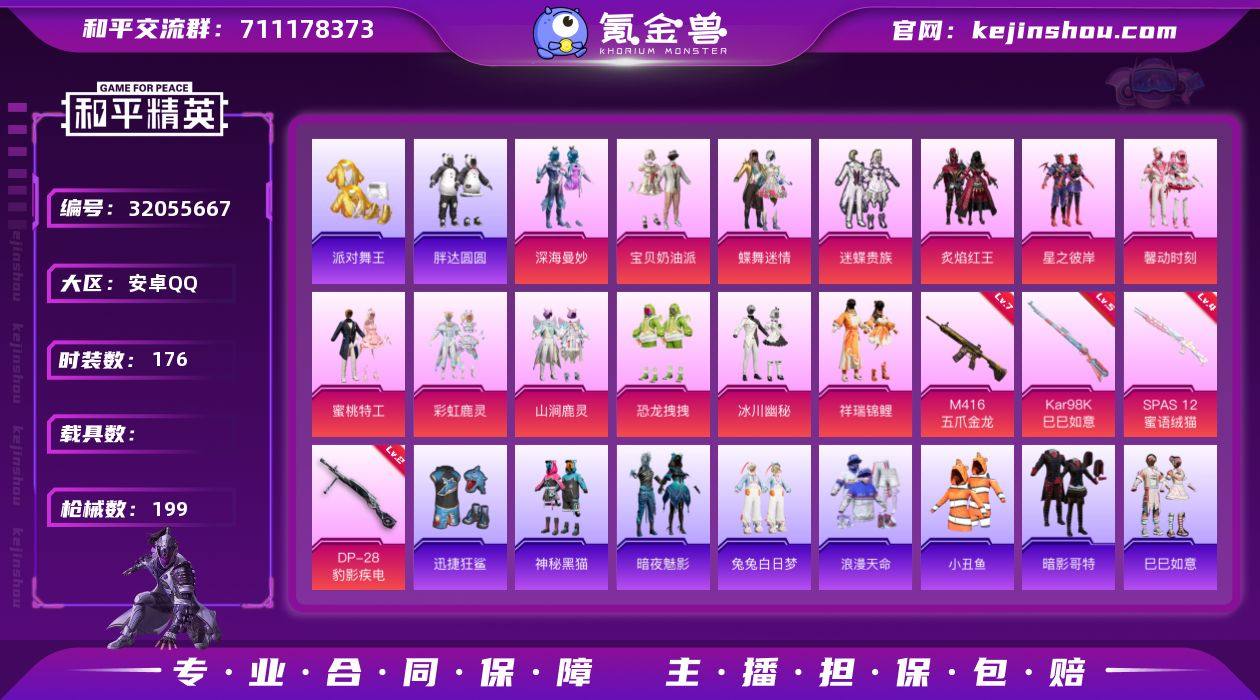安卓 手Q-13粉装-4特效枪-0载具-3粉色飞行器-69680热力值-15王牌印记-176套装-199枪皮 【热门品类】:套装-浪漫天命,套装-派对舞王,套装-小丑鱼,套装-胖达圆圆,套装-暗影哥特 【粉色套装】:粉装-深海曼妙,粉装-宝贝奶油派,粉装-蝶舞迷情,粉装-迷蝶贵族,粉装-炙焰红王,粉装-星之彼岸,粉装-馨动时刻,粉装-蜜桃特工,粉装-彩虹鹿灵,粉装-山涧鹿灵,粉装-恐龙拽拽,粉装-冰川幽秘,粉装-祥瑞锦鲤 【粉色枪皮等级】:M416-五爪金龙(七级),Kar98K-巳巳如意(五级),SPAS-12-蜜语绒猫(四级),DP-28-豹影疾电(二级) 【粉色枪皮】:M416-五爪金龙,Kar98K-巳巳如意,SPAS-12-蜜语绒猫,DP-28-豹影疾电 【粉色飞行器】:梦幻火箭飞行器,星之彼岸飞行器,庄周梦蝶飞行器 【粉色降落伞】:深海曼妙降落伞,甜心宝贝降落伞,春暖花开降落伞,神秘黑猫降落伞,锦绣火鲤降落伞,夏日绵绵冰降落伞,香水柠檬降落伞,暗夜玫瑰降落伞,林间仙鹿降落伞,太空嘟嘟降落伞,彩虹甜喵降落伞,精灵梦叶罗丽降落伞,金丰海韵降落伞,千金淑猫降落伞,晶梦幻蝶降落伞,樱桃泡泡降落伞 【稀有套装】:套装-巳巳如意,套装-雏菊兔兔,套装-萝兰蝴蝶,套装-小熊娃娃,套装-燕燕于飞,套装-鱼渊荷华,套装-晶辉守护,套装-蜜露汐语 【稀有枪皮】:AKM-夜灯,AKM-彩虹符号,AKM-恐龙拽拽,AKM-春暖花开,AKM-生命誓言,AKM-萌趣颜团子,AKM-虎虎生威,AKM-霓虹街区,AKM-龙的传人,M16A4-甜心亚梦,M16A4-莲影清波,SCAR-L-夏日绵绵冰,SCAR-L-玉兔迎春,SCAR-L-黄金龙骨,GROZA-异彩先驱,GROZA-彩虹符号,GROZA-恐龙拽拽,GROZA-春暖花开,GROZA-林间仙鹿,GROZA-治愈之星,GROZA-田园牧歌,GROZA-荧海星豚,GROZA-晶梦幻蝶,AUG-甜蜜菠萝,AUG-耀粉歌者,AUG-青春冒险家,QBZ-原初圣火,QBZ-飞驰魅影,M762-彩虹甜喵,M762-橘柚...