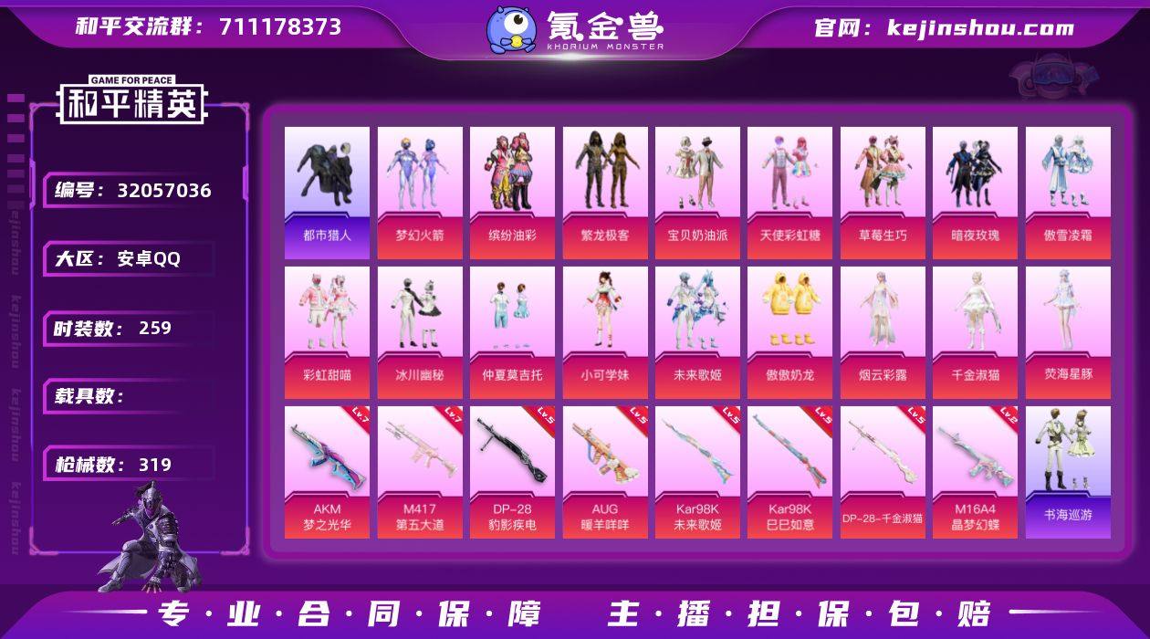 安卓 手Q-17粉装-8特效枪-0载具-11粉色飞行器-107097热力值-21王牌印记-259套装-319枪皮 【热门品类】:粉装-梦幻火箭,粉装-缤纷油彩,粉装-繁龙极客,套装-浪漫天命,套装-都市猎人,套装-小丑鱼,套装-龟仙人,套装-粉红小猪 【粉色套装】:粉装-宝贝奶油派,粉装-天使彩虹糖,粉装-梦幻火箭,粉装-缤纷油彩,粉装-草莓生巧,粉装-暗夜玫瑰,粉装-傲雪凌霜,粉装-彩虹甜喵,粉装-冰川幽秘,粉装-仲夏莫吉托,角色-小可学妹,粉装-未来歌姬,粉装-傲傲奶龙,粉装-繁龙极客,角色-烟云彩露,角色-千金淑猫,角色-荧海星豚 【粉色枪皮等级】:AKM-梦之光华(七级),M16A4-晶梦幻蝶(二级),AUG-暖羊咩咩(五级),Kar98K-未来歌姬(五级),Kar98K-巳巳如意(五级),M417-第五大道(七级),DP-28-千金淑猫(五级),DP-28-豹影疾电(五级) 【粉色枪皮】:AKM-梦之光华,M16A4-晶梦幻蝶,AUG-暖羊咩咩,Kar98K-未来歌姬,Kar98K-巳巳如意,M417-第五大道,DP-28-千金淑猫,DP-28-豹影疾电 【粉色飞行器】:星夜魔法师飞行翼,太空嘟嘟飞行器,拂晓神骑飞行器,霓虹漫游飞行器,星空武士飞行器,英伦信使飞行器,幽焰列车飞行器,凤舞九天飞行器,圣域金龙飞行器 【粉色降落伞】:甜心宝贝降落伞,梦幻火箭降落伞,暗夜玫瑰降落伞,林间仙鹿降落伞,恐龙拽拽降落伞,橘柚倾心降落伞,环太平洋降落伞,垂柳戏鸭降落伞,旋转彩虹降落伞,第五大道降落伞,飒粉甜心降落伞,天星战神降落伞,萌物绒绒降落伞,莲影清波降落伞,沙丘之主降落伞,蜜语绒猫降落伞,精灵梦叶罗丽降落伞,BEARBRICK降落伞,千金淑猫降落伞,晶梦幻蝶降落伞,彩虹独角兽降落伞,雪月幻音降落伞,冷漠罗丽降落伞,炫彩糖果降落伞 【稀有套装】:套装-龟仙人,套装-绒宝小鹅,套装-巳巳如意,套装-雪国风尚,套装-炫彩糖果,套装-雏菊兔兔,套装-萝兰蝴蝶,套...