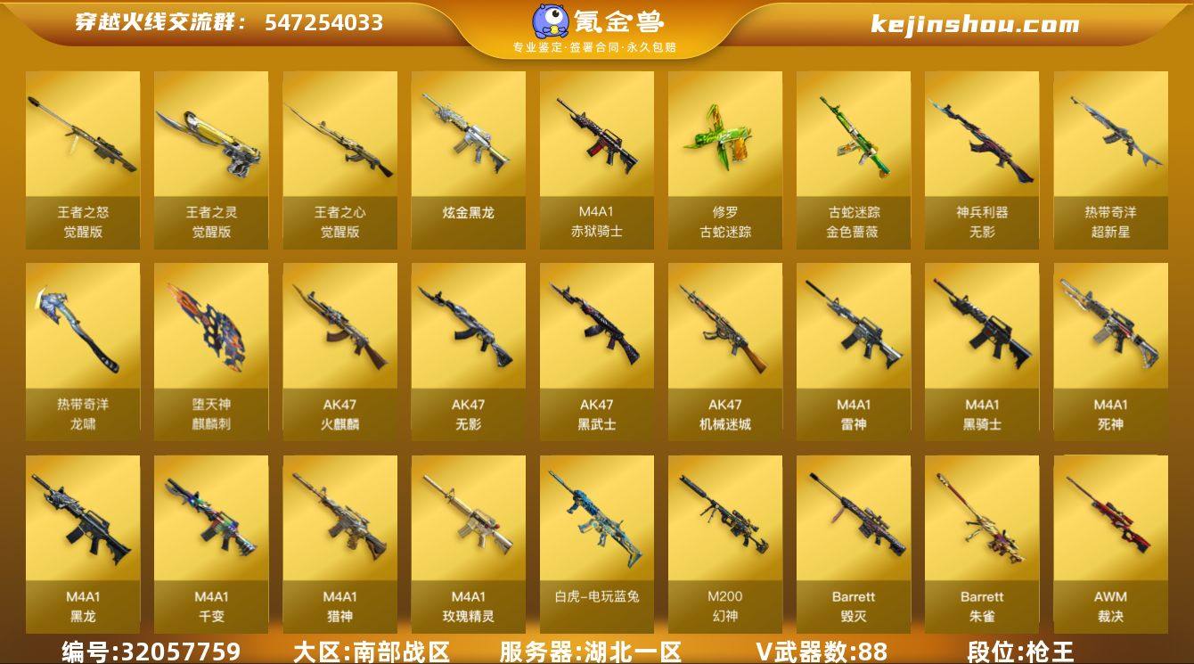 【ky5935】湖北一区-90V-3王者武器数-1炫金武器数 【热门武器】:QBZ03-金色蔷薇,HK417-朱雀,M200-幻神,金色蔷薇-古蛇迷踪,修罗-古蛇迷踪,死亡之眼,白虎-电玩蓝兔,M4A1-黑骑士*2,汤姆逊-烈龙*6,RPK-盘龙*6,加特林-炼狱,斯泰尔-蝴蝶,沙鹰-修罗*2 【王者炫金武器】:炫金黑龙 【音效卡】:M4A1-黑骑士音效卡,Barrett-毁灭音效卡 【皮肤】:雷神-暗月,雷神-星空,火麒麟-平天大圣,火麒麟-心动糖果,毁灭-星空,毁灭-英雄计划 皮肤,M4A1-千变-孔明皮肤,黑骑士-暗月,战神-粉色甜心皮肤,战神-流金岁月皮肤,AK47-B-常胜将军-孙权,炼狱-玩具枪皮肤,修罗-能量核心,擎天-秘银 【角色】:零,智,战地猎狐,王者涂鸦,蛇隐宗,奇洋探员,初恋灵狐,风暴女,嘉年华灵狐,零-水下丽影,灵狐者-黄金海岸,灵狐者-职业经理,曼陀罗-礼服,潘多拉-X,潘多拉-甜心教官,蛇姬,斯沃特-X,蜀雪,铁骑荣耀 【人偶武器】:天龙-曼陀罗,斯泰尔-蝴蝶,迷你地狱终结者,AWM-灵狐-15周年嘉年华,COP-旗袍,迷你深渊冰龙,夺魂,迷你生化手雷,生化手雷-机甲核心,迷你超能女侍,迷你巨石泰坦-魔花研究所,灵狐娃娃手雷 【暴走生化】:死亡之眼 【挑战大师】:冰龙粉碎者-白马银枪,激光毁灭者III 【英雄级武器】:M4A1-千变,AK47-火麒麟,M4A1-黑龙*2,M4A1-雷神,M4A1-黑骑士*2,AK47-无影,M4A1-死神,AK47-黑武士,AK47-机械迷城,HK417-朱雀,无影-神兵利器,超新星-热带奇洋,金色蔷薇-古蛇迷踪,M4A1-玫瑰精灵,QBZ03-金色蔷薇,M4A1-猎神,王者之心-觉醒版,AK47-B-常胜将军,白虎-电玩蓝兔,Barrett-毁灭*2,AWM-裁决,M200-幻神,Barrett-朱雀,王者之怒-觉醒版,Kar98K-量子之心,RPK-盘龙*6,加特林-炼狱,汤姆逊-烈龙*6,沙鹰-修罗*2,沙鹰-天神*3,柯尔特-电竞装甲,王者之灵-觉醒版,修罗-古蛇迷踪...