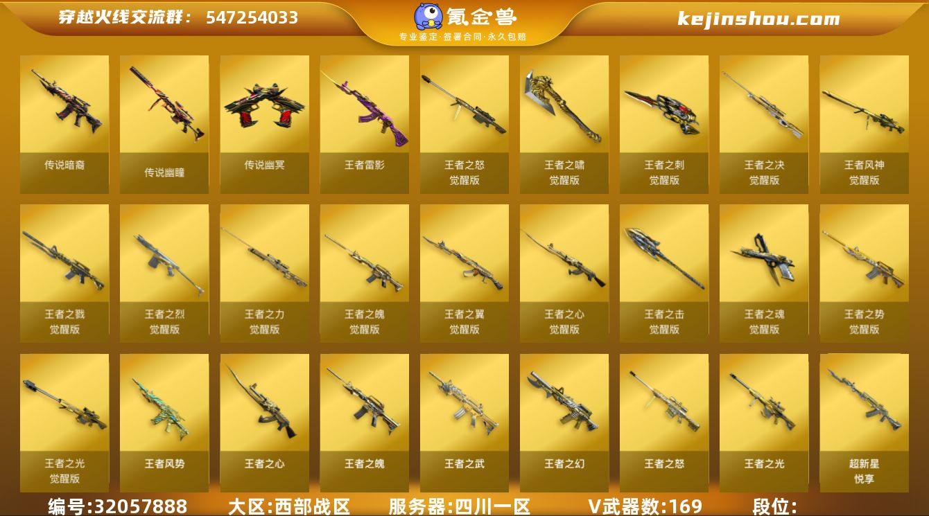 【16】169V/102级/荣耀元首/4传说/38王者/3炫金/11英雄/传说暗裔/传说幽瞳/传说幽冥/传说艾莉莎/QBZ03-金色蔷薇/M14EBR-玄武/Scar Light-白虎/HK417-朱雀/M4A1青龙/M200-幻神/M200-竞技荣光/死亡之眼/白虎-电玩蓝兔/Kar98k-星神/金色小号/C.A.T/炼狱-迷你小钢/牛牛-AK47/M4A1-黑骑士/汤姆逊-烈龙/RPK-盘龙/加特林-炼狱/斯泰尔蝴蝶/羊驼玩偶/降世魔童/毁灭-孙三炮/火麒麟-绝迹/沙鹰-修罗/炽芒蝶刃/黄金猫猫手套-白鲨/蝴蝶斯泰尔+6烈龙/超新星-悦享/王者之幻/王者之武/王者之魄/王者之心/王者风势/王者雷影/王者之光/王者之怒/炫金雷神/炫金毁灭/炫金修罗/M200-幻神音效卡/AK47-火麒麟音效卡/M4A1-雷神音效卡/M4A1-黑骑士音效卡/Barrett-毁灭音效卡/Barrett-极光音效卡/白虎音效卡/枪娘语音包-阿敏/绝迹语音包/星神音效卡/HK417-朱雀音效卡/炼狱-百战金芒-庆典舞曲音效卡/死神-雪域霜狐-怀旧音效卡/柯尔特-百战金芒-庆典舞曲音效卡/AWM-昌龙-怀旧音效卡/AK47-火麒麟-怀旧音效卡/幻神丹凤/幻神-宠儿/幻神动感闪耀/幻神-纸灯龙皮肤/幻神-电流骇客/幻神-Heartshot/幻神-星火小队签名臻藏版/幻神-传奇欧欧/白虎-大汉风骨/QBZ03-传奇宠儿/QBZ03-AG-CFPLS19冠军/金色蔷薇-枪娘阿敏/金色蔷薇-Heartshot/AWM-裁决-百城联赛天津皮肤/星神-璀璨皮肤/星神-巅峰荣耀/星神-傲竹金蛇/烈龙-星空/雷神-暗月/雷神-星空/雷神-虎将/雷神-耀金皮肤/雷神-传奇N9/雷神-脉冲核心/雷神-宇航兔/雷神-动感闪耀 皮肤/M4A1-再燃火线/火麒麟-华夏之心/AK47-火麒麟-传奇EVEN/火麒麟-轻羽皮肤/传奇石头-横秒之巅/火麒麟-大唐荣光/火麒麟-心动糖果/毁灭耀金皮肤/毁灭-星空/毁灭-冠军之怒/毁灭-CFPLS16皮肤/毁灭-黑大圣皮肤/毁灭-神秘黑洞皮肤/黑龙-能量核心/M4A1-黑龙-361/黑骑士-耀金皮肤/无影耀金皮肤/无影-霓裳皮肤/死神-机甲核心皮肤/AK47-黑武士...