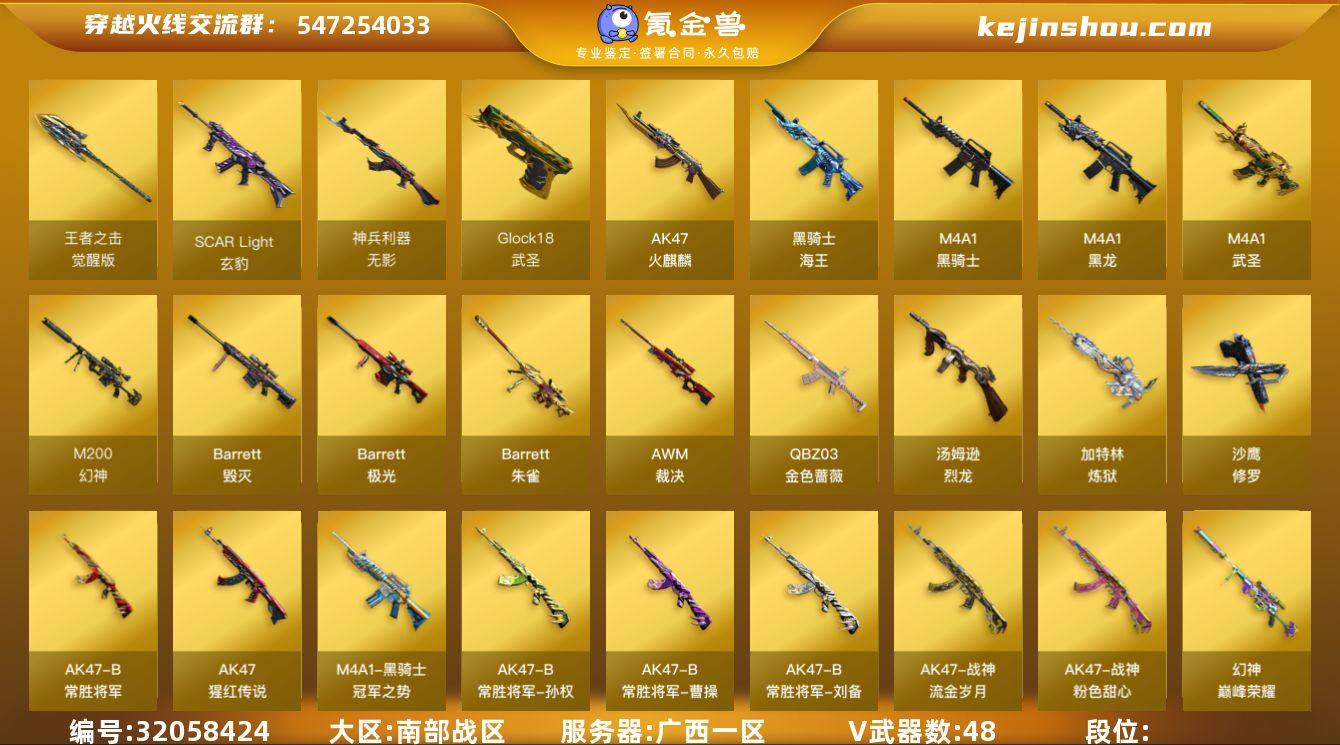 【5】48V/100级/元帅/1王者/QBZ03-金色蔷薇/M200-幻神/牛牛-AK47/M4A1-黑骑士/汤姆逊-烈龙/加特林-炼狱/沙鹰-修罗/M200-幻神音效卡/M4A1-黑骑士音效卡/传情小小语音包/幻神-巅峰荣耀/裁决-运输船 皮肤/毁灭-荣耀之怒/毁灭-魔灵皮肤/毁灭-直播专属/黑骑士-冠军之势/战神-粉色甜心皮肤/战神-流金岁月皮肤/AK47-B-常胜将军-曹操/AK47-B-常胜将军-刘备/AK47-B-常胜将军-孙权/修罗-星空/乔伊教练/暗夜-X/初恋灵狐/风暴女/嘉年华灵狐/兰-新年限定/兰妹妹/零-水下丽影/龙儿/麻雀/曼陀罗-X/女主播/斯沃特-X/异变清道夫-蛇影双骄/Scar Light-马枪/AWM-灵狐-15周年嘉年华/迷你裂空之翼/迷你波特博士/夺魂/迷你牛牛/生化手雷-机甲核心/闪光弹-小乔/闪光弹-貂蝉/高爆手雷-大乔/迷你艾比/超级对讲机/神圣爆裂者/冰龙粉碎者-白马银枪/VEPR-12-金魔/激光毁灭者/机甲撕裂者/阐释者/AK47-火麒麟/M4A1-黑龙/M4A1-武圣/无影-神兵利器/SCAR Light-玄豹/AK-47-猩红传说/黑骑士-海王/AK47-B-常胜将军/Barrett-毁灭/Barrett-极光/AWM-裁决/Barrett-朱雀/Glock18-武圣/王者之击-觉醒版/丛林匕首-玄豹/手雷-动感闪耀/高爆手雷-玄豹/闪光弹-玄豹/烟雾弹-玄豹/BS战队炫彩背包/全能枪王背包/炫彩背包/超级背包/女皇终结者-魔龙之吻/救世主-黑桃战神/黄金生化钩/绿色巨人/灵魂忍者/迷雾幽灵/夺命之镰/防化服/金色流光-枪王排位/热带奇洋打击特效/C4-高无钳/防弹头盔/防弹衣/C4工具钳/手雷包