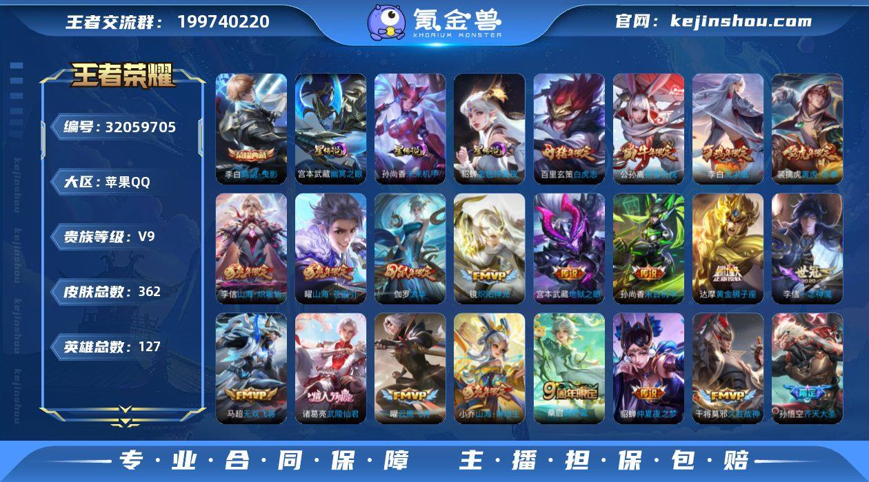 苹果Q-V9-至尊星耀II段位-打野35段,发育路34段,1金标公孙离3星元幽冥之眼,未来机甲,金色仲夏夜,127英雄-362皮肤-1典藏皮肤-30传说-107史诗 【英雄全皮】:猪八戒全皮,影全皮 【荣耀典藏】:李白鸣剑曳影 【传说皮肤】:桑启鸣野蒿,马可波罗妄想实况,孙悟空齐天大圣,小乔山海琳琅生,曜山海苍雷引,李信山海炽霜斩,吕布怒海麟威,马超无双飞将,露娜启示之音,裴擒虎寅虎赤拳,公孙离祈雪灵祝,镜炽阳神光,虞姬启明星使,孙悟空零号赤焰,曜云鹰飞将,李信一念神魔,伽罗太华,貂蝉猫影幻舞,干将莫邪久胜战神,虞姬云霓雀翎,达摩黄金狮子座,百里玄策白虎志,花木兰冠军飞将,梦奇胖达荣荣,后羿黄金射手座,诸葛亮武陵仙君,貂蝉仲夏夜之梦,李白凤求凰,孙尚香末日机甲,宫本武藏地狱之眼 【限定皮肤】:李白谪仙醉月,狄仁杰阴阳师,小乔山海琳琅生,赵云皇家上将,墨子神迹守卫,妲己时之彼端,嬴政优雅恋人,嬴政白昼王子,鲁班七号狮舞东方,庄周玄嵩,庄周高山流水,高渐离死亡摇滚,高渐离玩趣恶龙,钟无艳超时空战士,白起夜都怪侠,芈月幻夜卜梦,吕布猎兽之王,周瑜赤莲之焰,元歌云间偶戏,元歌无心,夏侯惇朔风刀,甄姬幽恒,甄姬落雪兰心,典韦蓝屏警告,典韦岱宗,马可波罗暗影游猎,马可波罗山海玄木吟,马可波罗妄想实况,狄仁杰魔术师,狄仁杰万华元夜,达摩星际陆战队,达摩沙漠行僧,项羽海滩派对,老夫子醍醐杖,老夫子航海奇遇记,关羽冰锋战神,程咬金演武夺筹,露娜一生所爱,露娜启示之音,韩信飞衡,王昭君凤凰于飞,兰陵王驯魔猎人,兰陵王金庭之子,花木兰默契交锋,亚瑟潮玩骑士王,孙悟空大圣娶亲,孙悟空零号赤焰,孙悟空齐天大圣,牛魔御旌,后羿圣弓游侠,李元芳银河之约,李元芳云中旅人,虞姬启明星使,钟馗神迹守卫,钟馗驱傩正仪,杨玉环遇见飞天,女娲朔望之晖...
