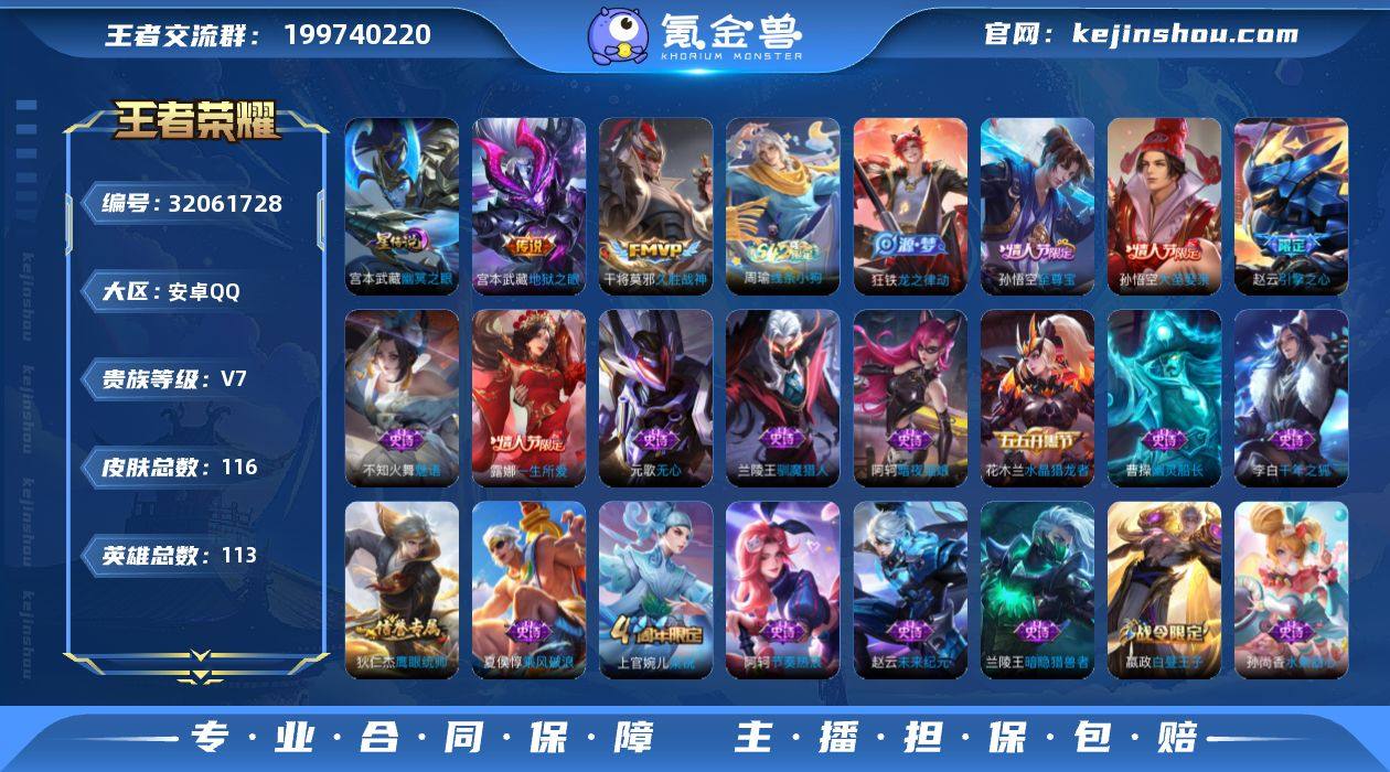 贵族等级:V7 典藏皮肤数:0 珍品无双皮肤数:0 无双皮肤数:0 珍品传说皮肤数:0 传说皮肤数:2 史诗皮肤数:26 皮肤数:116 英雄数:113 段位:钻石