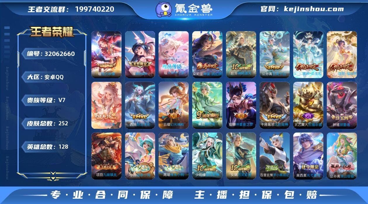 【4843】安卓Q-V7-最强王者段位-128英雄-252皮肤-1典藏皮肤-1无双-1珍品传说-11传说-83史诗 【英雄全皮】:孙权全皮,敖隐全皮,西施全皮,空空儿全皮,影全皮,少司缘全皮 【荣耀典藏】:瑶拾光映像 【无双皮肤】:瑶真我赫兹 【珍品传说】:瑶大耳狗之梦 【传说皮肤】:朵莉亚神骥鸣幻洲,后羿神树通天,公孙离云诺千山,西施续相思,妲己愿照众生和,蔡文姬愿照福禄聚,云缨幻光神枪,桑启鸣野蒿,西施游龙清影,干将莫邪久胜战神,貂蝉仲夏夜之梦 【限定皮肤】:蒙犽顽岩魄,蔡文姬夏日便利店,大乔绒语心约,虞姬夏日便利店,姜子牙天穹之誓,狄仁杰阴阳师,赵云皇家上将,元歌云间偶戏,狄仁杰魔术师,项羽海滩派对,貂蝉逐梦之音,安琪拉魔法小厨娘,杨玉环遇见飞天,百里玄策原初追逐者,裴擒虎擒涛扼浪,米莱狄胡桃异想国,云中君纤云弄巧,上官婉儿神器万象笔,嫦娥拒霜思,西施玲珑珍味,西施至美乘鲤谣,鲁班大师探海日志,艾琳流音漫舞,阿古朵江河有灵,张良古海寻踪,蒙犽百解令,高渐离燃音魔法,妲己灵卜魔法,鬼谷子天穹祈灯,大乔乘龙忆丹青,沈梦溪龙舞盛年,鲁班七号蔬乡物语,李元芳蔬乡物语,刘邦剑破天穹,程咬金群星魔术团,镜青焰无极,项羽苍威无极,周瑜熔金海岸 【年限皮肤】:大乔乘龙忆丹青,妲己愿照众生和,蔡文姬愿照福禄聚 【赛季限定】:裴擒虎擒涛扼浪,鲁班大师探海日志,张良古海寻踪,鬼谷子天穹祈灯,刘邦剑破天穹,姜子牙天穹之誓,东皇太一噬灭天穹,太乙真人谧流熔炉,钟馗虚灵犬护,甄姬逆浪荇歌,亚瑟荣光之誓,百里玄策原初追逐者,牛魔星界战将,项羽九幽镇关 【战令限定】:元歌云间偶戏,米莱狄胡桃异想国,西施玲珑珍味,艾琳流音漫舞,高渐离燃音魔法,妲己灵卜魔法,鲁班七号蔬乡物语,李元芳蔬乡物语,镜青焰无极,项羽苍威无极,蔡文姬夏日便利店,虞姬夏...