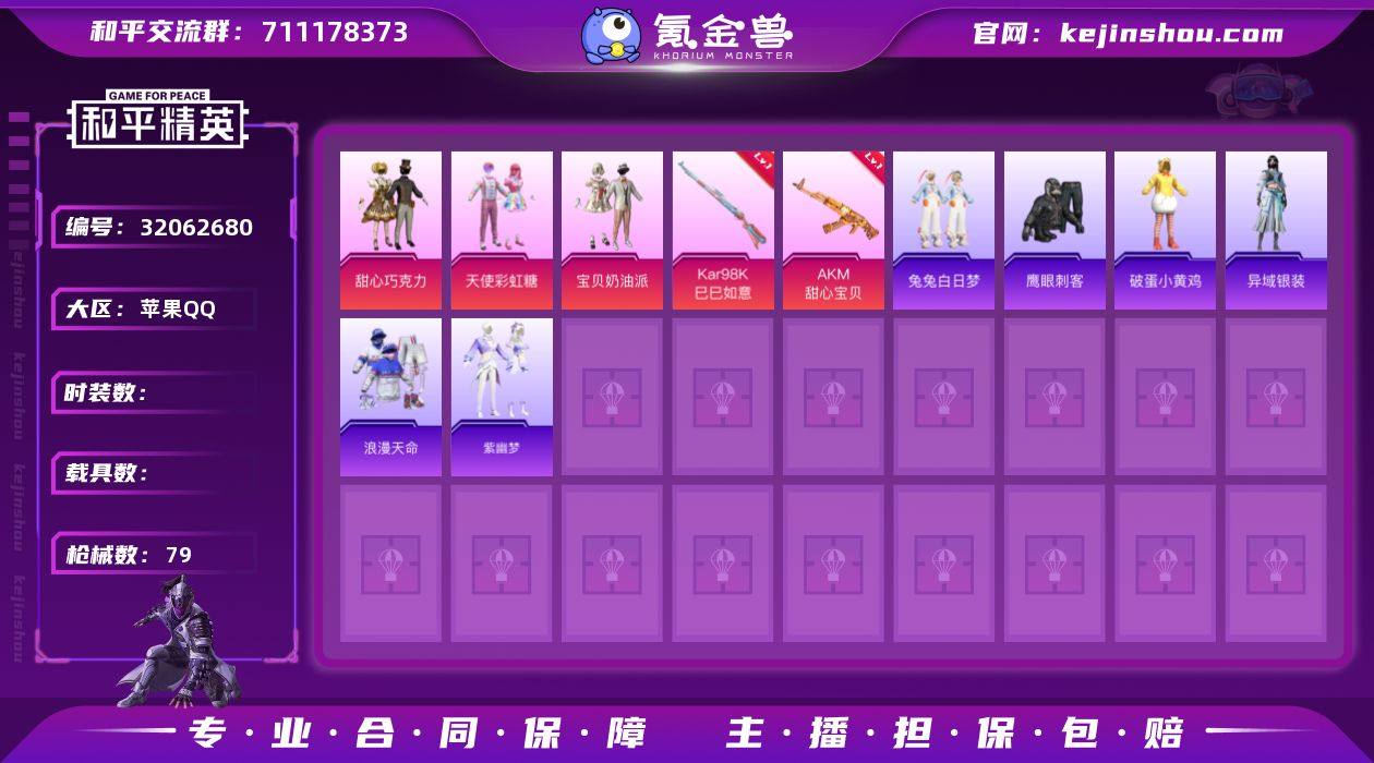 DSH2285【巧克力三姐妹】苹果手Q-4粉装-3特效枪-65套装-79枪皮-3王牌印记-不朽星钻Ⅴ-23975热力值【4粉装】角色-绯穹魔姬,天使彩虹糖,甜心巧克力,宝贝奶油派【3特效枪】DP-28-豹影疾电[5级],Kar98K-巳巳如意[5级],AKM-甜心宝贝[3级]【1稀有】浪漫天命【5飞行器】异域银装飞行器,鸡智如我飞行器,狂鲨锋刃飞行器,炫彩糖果飞行器,破刃行动尾迹【1头盔】甜心宝贝头盔【1背包】甜心宝贝背包【136其它衣服和枪皮】黄色运动,白糯汤圆,银月精灵,凌霄紫焰,缤纷果语,元素星魂,汪仔布丁,琴音绮想,星谷精灵,角色-紫俏灵猫,大橘大利,柠萌假日,画境星梦,彩虹兔,破蛋小黄鸡,滨海厨神,SS33特训,游乐,白兰地假日,猛禽,旭日情侣,书海巡游,魅力单车,SS32特训,理性主义,兔兔白日梦,雪绒豹,恋语绒绒,幻世战舞者,春日漫步,风迹短诗,极速光影,恋恋初桃,朱霞炽焰,鹰眼刺客,蓝冰羽,青涩时光,角色-碧青流霞,蜜露汐语,薄荷星砂,SS36特训,红色运动,破晓战魂,云魄琉璃,耀粉歌者,午间小调,紫幽梦,擎苍青焰,SS35特训,王牌教练,缠丝流银,SS31特训,云朵鹅,角色-杯旋调茶师,顽皮玉兔,异域银装,SS34特训,萌鸡速递,蓝彩潮人,顶瓜瓜,ARX-回旋牧梦使,蜜獾-风迹短诗,Mk14-薄荷星砂,PKM-啾咪啾咪,蜜獾-鸡智如我,M249-彩虹符号,平底锅-甜心宝贝,SCAR-L-彩虹符号,Kar98K-影袭,烟雾弹-冰氧夏日,平底锅-凌霄紫焰,AWM-天降萌叽,SLR-霓彩脉冲,UZI-汪仔布丁,撬棍-甜心宝贝,ACE32-冰晶雪宝,SVD-云朵鹅,电击枪-喜羊羊与灰太狼,R45-幻彩电音,Famas-汪仔布丁,GROZA-紫矿核心,P92-凌霄紫焰,AC-VAL-霁蓝缠春,莫辛纳甘-风迹短诗,SPAS-12-狂鲨锋刃,大砍刀-云朵鹅,破片手榴弹-拽到爆炸,平底锅-霁蓝缠春,S12K-霓彩脉冲,UZI-影袭,AUG-异域银装,PKM-紫幽梦,DBS-风迹短诗,M1加兰德-画境星梦,P92-紫幽梦,AKM-霓彩脉冲,平底锅-画