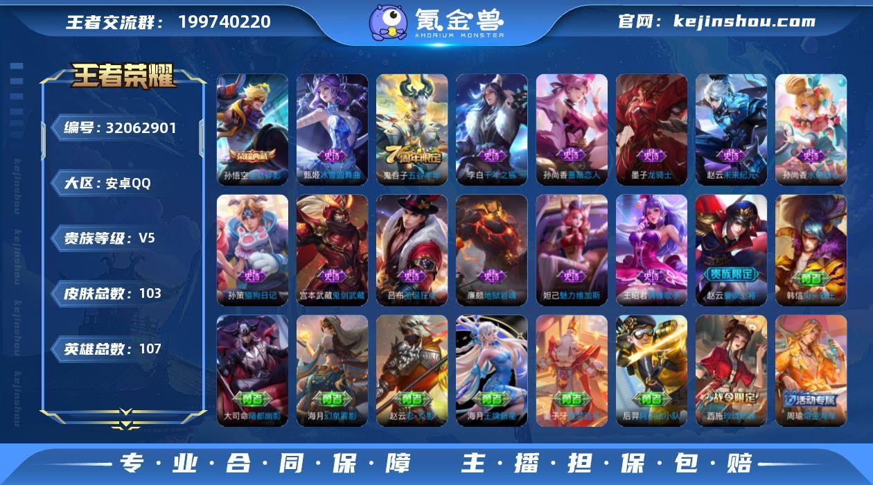 WLWZ1038【V5 1典藏 全息大圣 千年之狐】安卓Q-103皮肤-107英雄 【典藏皮肤】 全息碎影 【史诗皮肤】 谧流熔炉 鸭鸭历险记 线条小狗 王牌新星 幻夜行动 魅力维加斯 鬼剑武藏 千年之狐 地狱岩魂 圣诞狂欢 龙骑士 猫狗日记 水果甜心 蔷薇恋人 偶像歌手 皇家上将 冰雪圆舞曲 五谷丰年 未来纪元 【勇者皮肤】 金庭之子 云中旅人 玲珑珍味 探海日志 海盐诗旅 流音漫舞 天穹祈灯 古海寻踪 星梦巡礼 命运加冕 破局者 破局者 时尚教父 溯影追猎 噬灭天穹 暗都幽影 天穹之誓 剑破天穹 熔金海岸 鸭鸭历险记 虚灵犬护 雪境奇遇 玫蓝誓约 完美运算 逆浪荇歌 逆浪荇歌 谧流熔炉 劲辣红锅 万象初新 街头霸王 教廷特使 阿尔法小队 特工战影 无尽征程 万事如意 秘密基地 哥特玫瑰 虹云星官 坚韧之力 海滩派对 死亡骑士 忍·炎影 掌控之力 幻泉雾影 归虚梦演 归虚梦演 擒涛扼浪 大漠名商 西部大镖客 白色死神 救世之瞳 化身博士 无双福将 沙漠行僧 少女阿狸 阴阳师 黄金武士 【稀有英雄】 敖隐 橘右京 夏洛特 娜可露露 韩信 艾琳 赵云 营地ID:1751768330