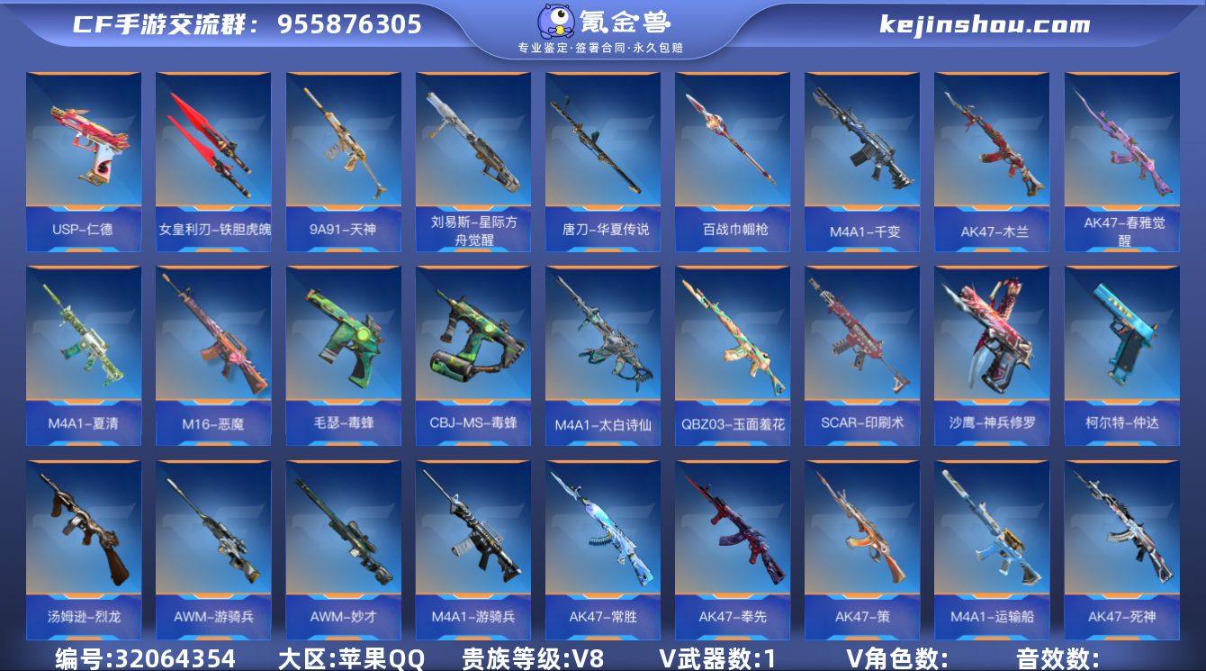 WLQZ508【V8 292V 335金V 5至尊2同框 心至尊 魄至尊 怒至尊 圣至尊 狱至尊 冰皮王圣 冰皮王迹 冰片王痕 王魄HS 王魂HS 王锋HS 奉先 AK47策 m4游骑兵套带皮 AWM游骑兵带皮 cop飞龙在天 黄金cop 王影 王兽 王尊 王神 王烈 王霆 常胜 妙才 】【等级】150【区服】手Q-苹果【金角色数】10【金武器数】292【金V角色】 樱 审判者 幽灵刀锋-觉醒 葵 关小雨 职场灵狐-赛事经理 子涵 妩媚妖姬 炽天使-X 救世主-X 复仇者 复仇者 【金V武器】 加特林-蟒蛇 王者之圣 巴雷特-毁灭 GLOCK18-猎神 汤姆逊-烈龙 M12S-雷霆 屠龙 屠龙 火麒麟闪光弹 9A91-天神 龙啸 沙鹰-修罗 98K-血月 死神手雷 M4A1-竞技战魂 地狱烈炎 擎天觉醒 M4A1-死神 AK47-无影 王者之怒 AWM-妙才 火麒麟闪光弹 M4A1-黑骑士 CZ75-穷奇 王者之魄 女皇利刃-幻兽 沙鹰-火麒麟 AK47-火麒麟 火麒麟烟雾弹 巴雷特-极光 燃烧弹-游骑兵 M4A1-黑龙 铁锹-游骑兵 沙鹰-游骑兵 AWM-游骑兵 M4A1-运输船 AK47-竞技战魂 王者之影 斯泰尔-幻兽 王者之痕 CZS2-心动次元觉醒 M4A1-死神 火麒麟手雷 QBZ03-死神 AN94-卷帘大将军 麒麟刺 M4A1-沙漠领主 幻兽烟雾弹 幻兽闪光弹 M4A1-游骑兵 AK47-角斗士 王者之魂 死神手雷 寒霜烈龙 沙鹰-幻兽 KSG-火力竞放觉醒 刘易斯-天使 屠龙 M4A1-雷神 TAC-天使 AK47-常胜 AA12-雷神 巴雷特-毁灭 尼泊尔-火麒麟 烟雾弹-雷霆 闪光弹-雷霆 高爆手雷-雷霆 屠龙 HK416-混世行者 墨刃-幻神 23-幻神 双持斯泰尔-天使 黑骑士手雷 QCW05-死神 M4A1-堕天神 AWM-裁决 嗜血金鲨 AK47-波塞冬 马来剑-毁灭 AK47-奉先 王者之迹 王者之圣烟雾弹 81式-光明之神 王者之圣手雷 王者之翼烟雾弹 黑骑士闪光弹 王者之心手雷 王者之心手雷 尼泊尔-机械纪元 王
