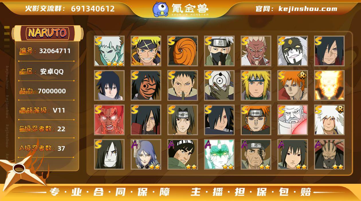 实名: 可修改 贵族等级: V11 S忍数: 22 A忍数: 37 战力值(万): 700 S级忍者: 佩恩·天道「超」,宇智波斑「秽土转生」,宇智波斑 「木叶创立」,佩恩「天道」,大蛇丸,波风水门,宇智波鼬 「须佐能乎」,迈特凯「死门」,宇智波带土 「忍界大战」,自来也 「舞之豪杰」,宇智波斑「白面具」,漩涡鸣人 「九喇嘛连结」,大筒木金式「博人传」,神秘面具男 「红夜之刃」,宇智波佐助「永恒万花筒」,宇智波斑「秽土转生·解」,大筒木桃式,艾「忍界大战」,旗木卡卡西「须佐能乎」,宇智波斑「五影会谈」,漩涡鸣人·宇智波佐助,宇智波带土「十尾人柱力」 通灵兽: 熊猫