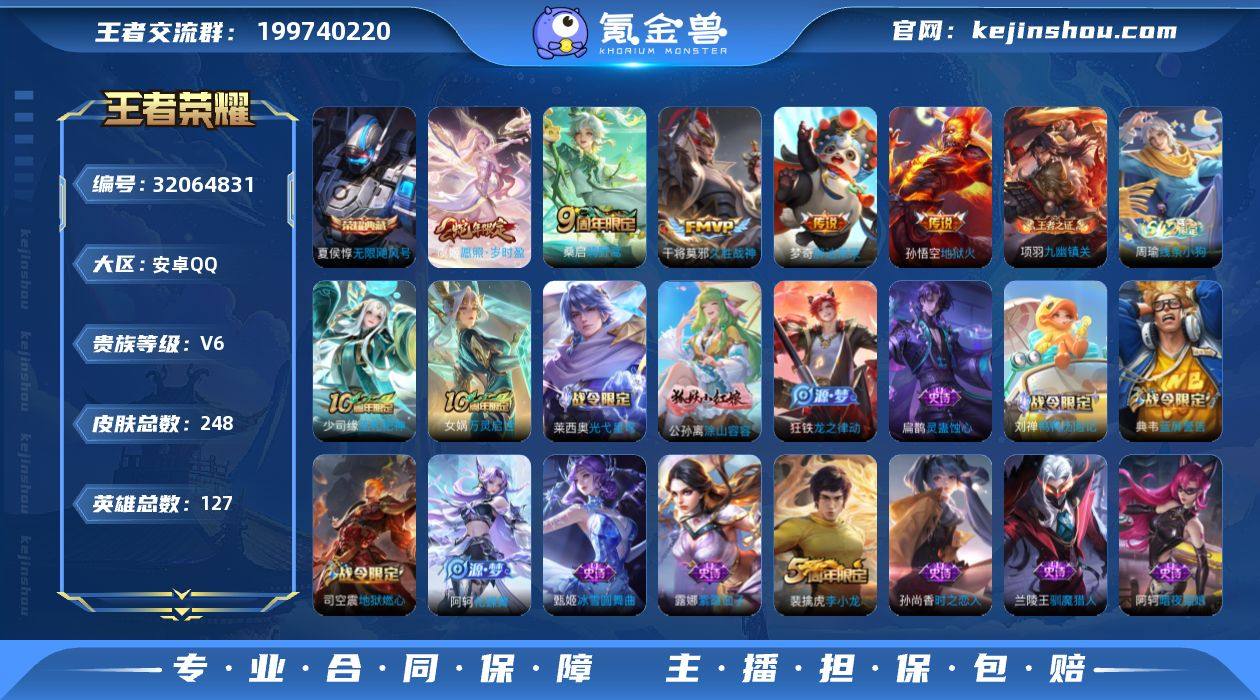 编号95115 不可二次 V7 248皮肤 1典藏 5传说 无限飓风号 愿照·岁时盈 地狱火 胖达荣荣 久胜战神 鸣野蒿 逐霄战戟 逐浪之夏 玩趣恶龙 胡桃夹子 冰冠公主 街头霸王 暗夜猫娘 乱世虎臣 李小龙 特工魅影 天秀·启明 猫狗日记(男) 曙光守护者 乐园奇幻夜