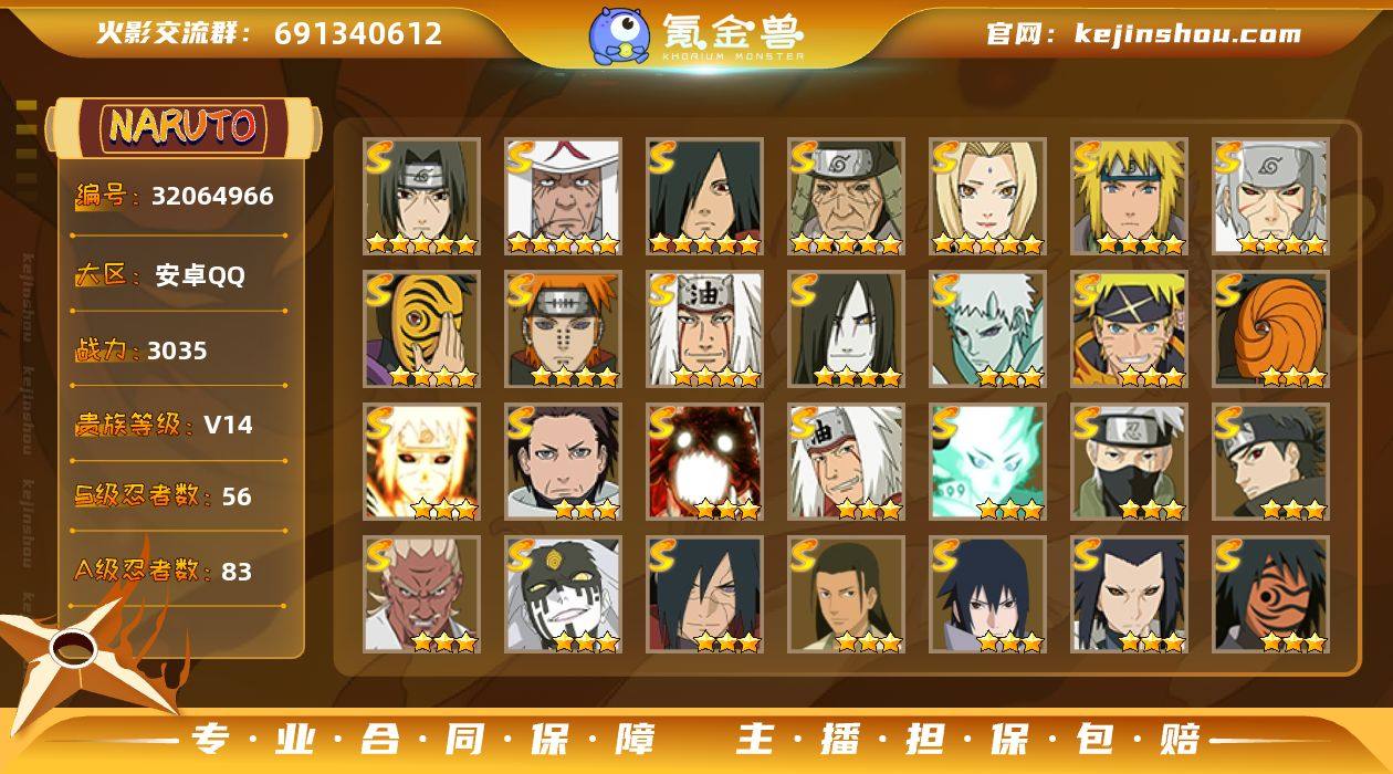 "yxb-52S/87A/V15/战力3385w/可二次/苹果q106 S:自来也、仙人自来也、大蛇丸、纲手、水门、日斩、斑、须佐能乎鼬、白面具、忍战樱、舞杰自来也、秽土柱间、秽土鼬、天道佩恩、秽土长门、仙人兜、第六尾鸣人、九喇嘛鸣人、永恒佐助、须佐卡卡西、传说自来也、百豪纲手、死门凯、秽土水门、秽土日斩、秽土扉间、扉间、桂间、创立桂间、秽土斑、木叶创立斑、秽土解斑、须佐止水、神秘面具男、忍战带土、红夜面具男、罗砂、三代风影、烈斗、鬼灯幻月、四代目雷影、忍战艾、三代目雷影、金角.银角、大野木、无、忍战大野木、秽土半藏、天道.超、最终章舍人、博人传桃式、博人传金式 A:凯、阿斯玛、疾风传我爱罗、武士扉间、蝎、鬼鲛、飞段、死司凭血飞段、仙人鸣人、卡卡西、奇拉比、忍战奇拉比、青年长门、晓大蛇丸、暴怒带土、博人传黑土、忍者之路面麻、须佐佐助、疾风咒印佐助、宇智波泉奈、百豪樱、忍战丁次、忍战宁次、忍战李、忍战天天、最终雏田、真容卡卡西、忍战卡卡西、元气卡卡西、惊门凯、秽土阿斯玛、七夕阿斯玛、地陆、新春止水、团藏、青年日斩、新春水门、忍战我爱罗、忍战勘九郎、白秘技千代、泳装照美冥、侠隐照美冥、秽土再不斩、再不斩、武士再不斩、青年艾、达鲁伊、三船、半蛇斗篷兜、不风、不缘、不动、漂泊六道、泳装小南、漂泊小南、新春小南、绝、晓创生角都、角、地怨虞角都、秽土角都、绯流琥蝎、百机操演蝎、新春鼬、夏日鼬、蛟肌融合鬼鲛、秽土迪达拉、新春迪达拉、阿飞、恶灵之萤囊飞段、漂泊带土、加藤断、神农、博人传木叶丸、博人传长十郎、桃式显现博人、博人传达鲁伊、 通灵:忍犬、蓝蛇、蛤蟆吉、忍龟、镰鼬、猿魔、山椒鱼、蜃、蛤蟆仙人、鲛鲨、蛤蟆健、蛤蟆龙、砂之守鹤、辛牙、蛤蟆广、梦貘、鹰、蜘蛛、蛞蝓、螃蟹、变蛇龙、熊猫、一尾守鹤、蛤蟆文太、万蛇、二尾又...