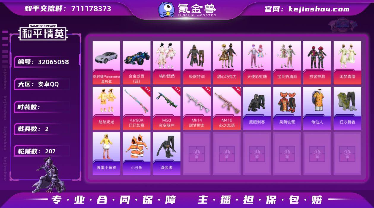 DSH1986【男身上素材身法号 8粉 5特 2车 狂沙舞者 小丑鱼 极限特训 巧克力三姐妹 发光眼罩 熔岩游骑兵口罩】安卓Q-2载具8粉装5特效枪7热门154套装207枪皮 64511热力值 15印记 历史传奇王牌14星 【2载具】 保时捷Panamera(星辰紫) 合金龙骨蓝色 【8粉装】 憨憨奶龙 宝贝奶油派 天使彩虹糖 甜心巧克力 桃粉嫣然 闲梦青缨 放客神游 极限特训 【5特效枪】 M416-心之恋语 (7级) Kar98K-巳巳如意 (5级) MG3-突变脉冲 (7级) DP-28-豹影疾电 (5级) Mk14-甜梦熊击 (5级) 【7热门】 小丑鱼 龟仙人 呆萌铁蟹 鹰眼刺客 狂沙舞者 漫步者 破蛋小黄鸡 【1头盔】 甜心宝贝头盔 【1背包】 甜心宝贝背包 白色伏地魔 黑色伏地魔 竞技名士 深蓝色名流 酒红色名流 湖蓝色名流 黄色名流 猛禽 长空猛禽 漫步者 海岛探路者 雨林探路者 旭日情侣 特战装甲 龙腾端午 燃烧卡路里 鹰眼刺客 冰冻风暴 人气偶像 幻影武者 街头潮人 魅力单车 绮丽涂鸦 竞技达人朋克 都市漫游者 野性战心 超能勇士 狂沙舞者 森林游猎者 沙漠兵团 幻世战舞者 甜蜜菠萝 血色贵族 呆萌铁蟹 夏日倾情 缤纷果语 滨海厨神 Alan Walker 龙魂突击队 麻辣教官 小丑鱼 破蛋小黄鸡 疯狂小兔子 鹤鸣 霓虹街区 白熊同盟 萌黄之夏 探宝勇士 牛气满满 战术大师 牛气冲天 耀粉歌者 飞行日记 曼妙人鱼 热情海星 纯真浪花 星梦畅游 AKM-龙的传人 AKM-荧星灵猫 AKM-玄冥寒域 M16A4-幻世战舞者 M16A4-冰河战士 SCAR-L-红色方程式 SCAR-L-夜灯 SCAR-L-炫彩节奏 SCAR-L-玉兔迎春 SCAR-L-甜蜜旋律 SCAR-L-海盐豹豹 M416-蓝色火焰 M416-红色方程式 M416-糯团青竹 M416-极冰使者 GROZA-影袭 GROZA-彩虹符号 GROZA-懵萌河马 GROZA-2B战斗服款 AUG-耀粉歌者 AUG-天降萌叽 AUG-异域银装 AUG-紫晶流影 QBZ-