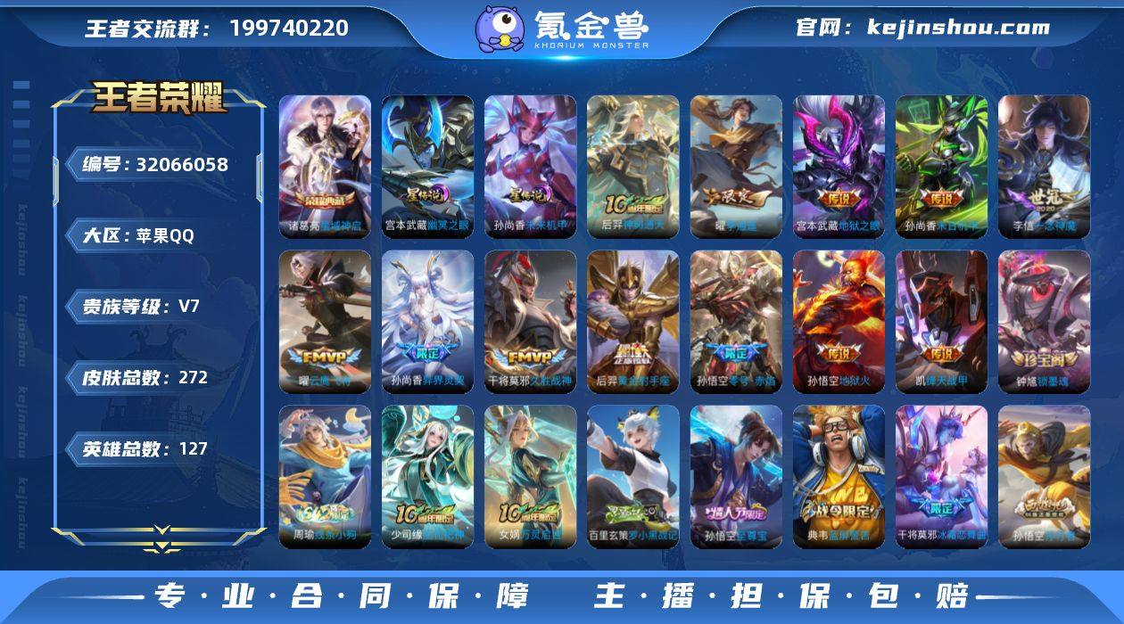 ky 可认证 苹果(q)区 金标亚瑟 272皮 1典藏 12传说 101限定 13王者印记 2星 亮点推荐:【星域神启 李逍遥 零号·赤焰 异界灵契-孙尚香 久胜战神】道具内容:1按键