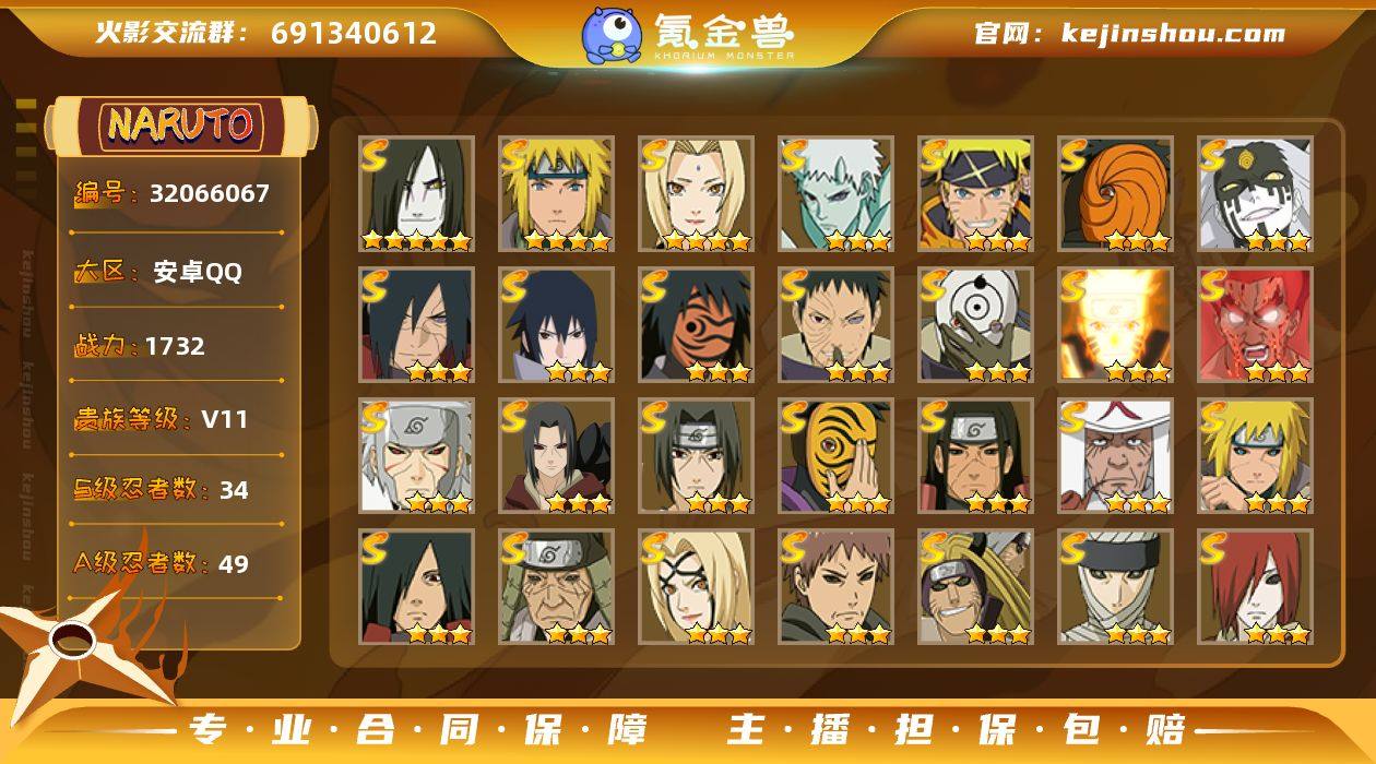 【性价比中配号 多碎片 新年价】y6714 战力1700w 34s 48a 2个298a 1个198a 22400金币 25忍法帖可开 五星大蛇丸 四星纲手 水门 97片仙自 41片扉间 99片创立柱间 60片创立斑 57片四代雷 69片忍战艾 40片大野木